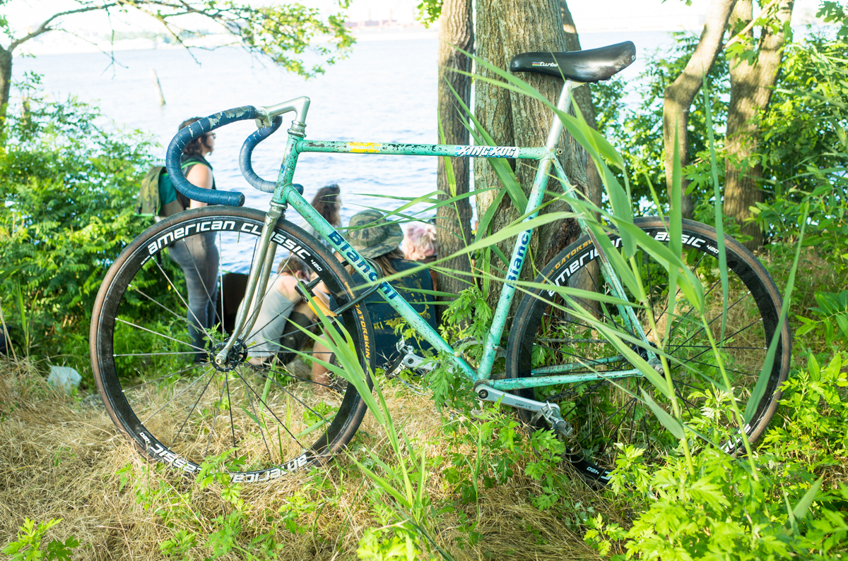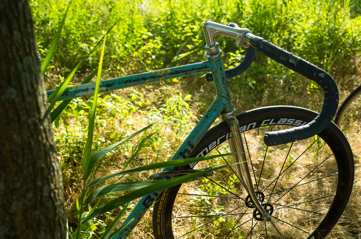 I come back to Philly often. Mostly to ride mountain bikes, catch up with friends I don’t get to see enough of, and really just hang out in a slower paced city. I met Drew through one of my oldest friends, Ryan Filson, who’s shared some amazing work here on the site, and been in a few stories as well. They actually both work at Timecycle Courier together. Drew showed up to hang out with one of the chillest demeanors, and probably one of the raddest, most perfectly beat up work bikes I’d seen in a while. Since we’re obsessed with photography, we obviously had to take some sexy shots of this beautiful Bianchi…