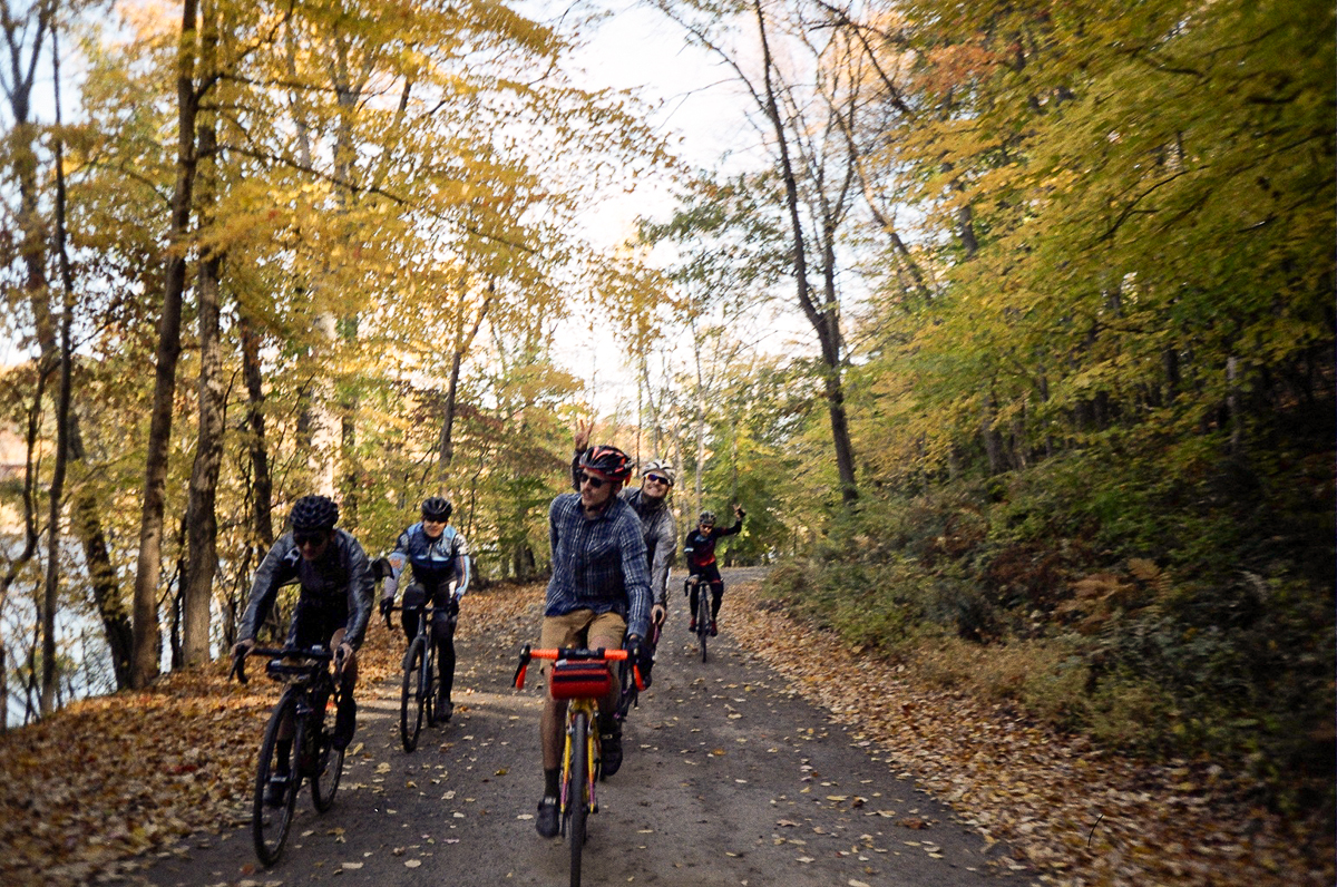 The final stretch of road that leads up to the Croton Dam is a beautiful, wide, tree lined gravel road that goes under a bridge, and spits you out right at the top of the dam. Holy hell is this road a treat. We stop to take some photos, I goof around doing some long foot down skids, and bend my derailleur hanger into oblivion. Now I have one gear, maybe. Luckily, everyone’s pretty on board with getting some beers and taking the Metro-North train back into the city. Which happened to be a couple miles away from the dam.