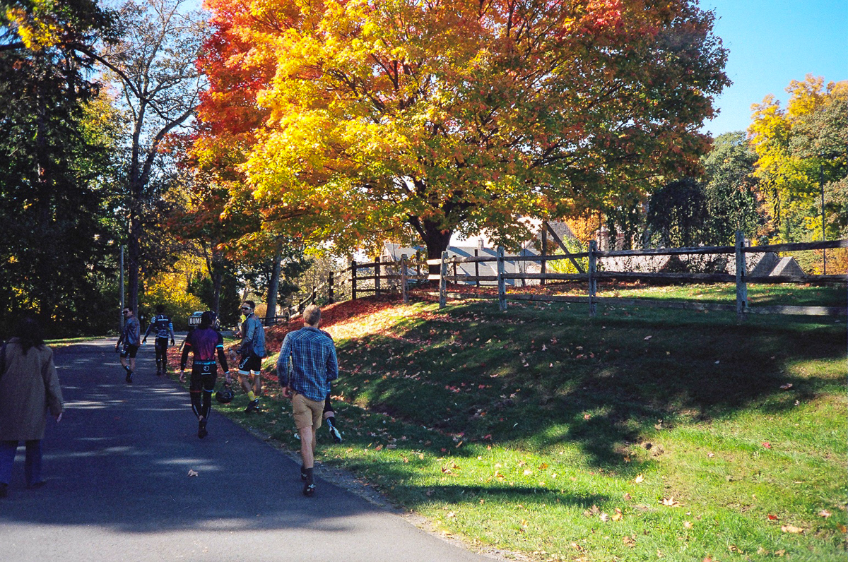 We end up being spit out onto a proper, paved, and beautifully fall covered path that would take us all the way up to the Croton Dam. Of course, with a lot of photo opps along the way, me finally dragging ass as my head cold caught up with me, and a stop by Blue Hill Farms in Pocantino Hills, NY for coffee and some of the best organic apples you’ve ever had in your life.