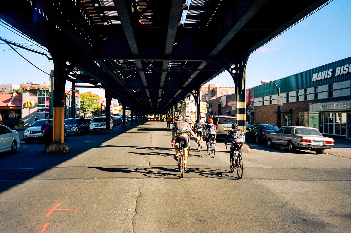 As I fought a head cold, I woke up late and headed out towards Brooklyn Roasting Co next to the Brooklyn Navy Yards, to meet an unknown amount of people through my one friend Roman. I knew we would be heading up to the Croton Dam through some route’s I haven’t explored in years. I knew the crowd would be a good group so I trudged through my head cold, waking up way past my alarm, and rushing out to meet up with a group of guys that were waiting on ME. Sorry guys. We meet up and roll over the Manhattan Bridge, and zig-zag up lower manhattan to get over to the Rapha store where we’re meeting one more person. I hadn’t even had coffee yet. Luckily, Isaac, a friendly face over at Rapha made me a killer americano, and it felt like my day had finally started. I pull out one of my four halves of peanut butter and jelly. Breakfast. Finish my coffee, and we roll up to the UWS via West Side. I knew Brad from Roadrunner Bags was coming along on this ride, and we had been playing phone tag since he got into town. We met Brad way up town, and then headed further up to cross over out of Manhattan via Broadway. We cross over the tiny bridge that connects Manhattan to Kingsbridge, and cruise under the elevated train towards Van Cortlandt park.