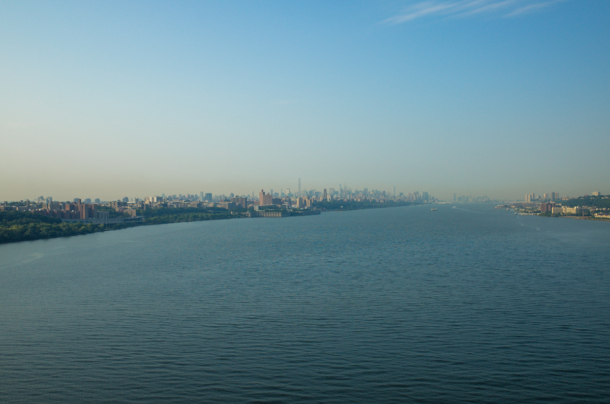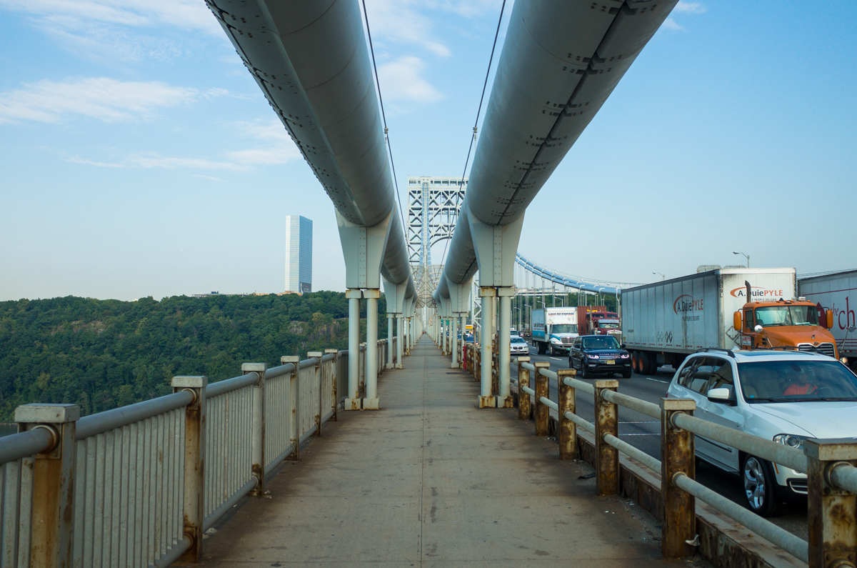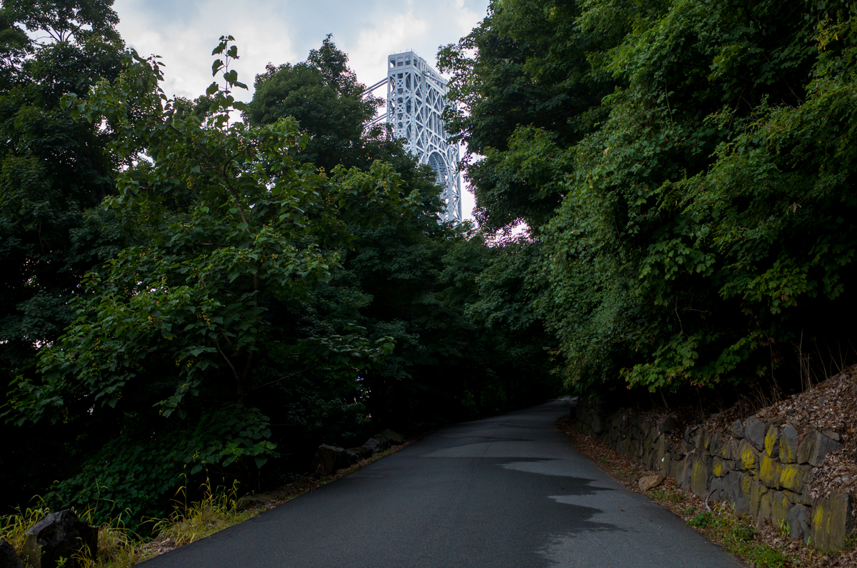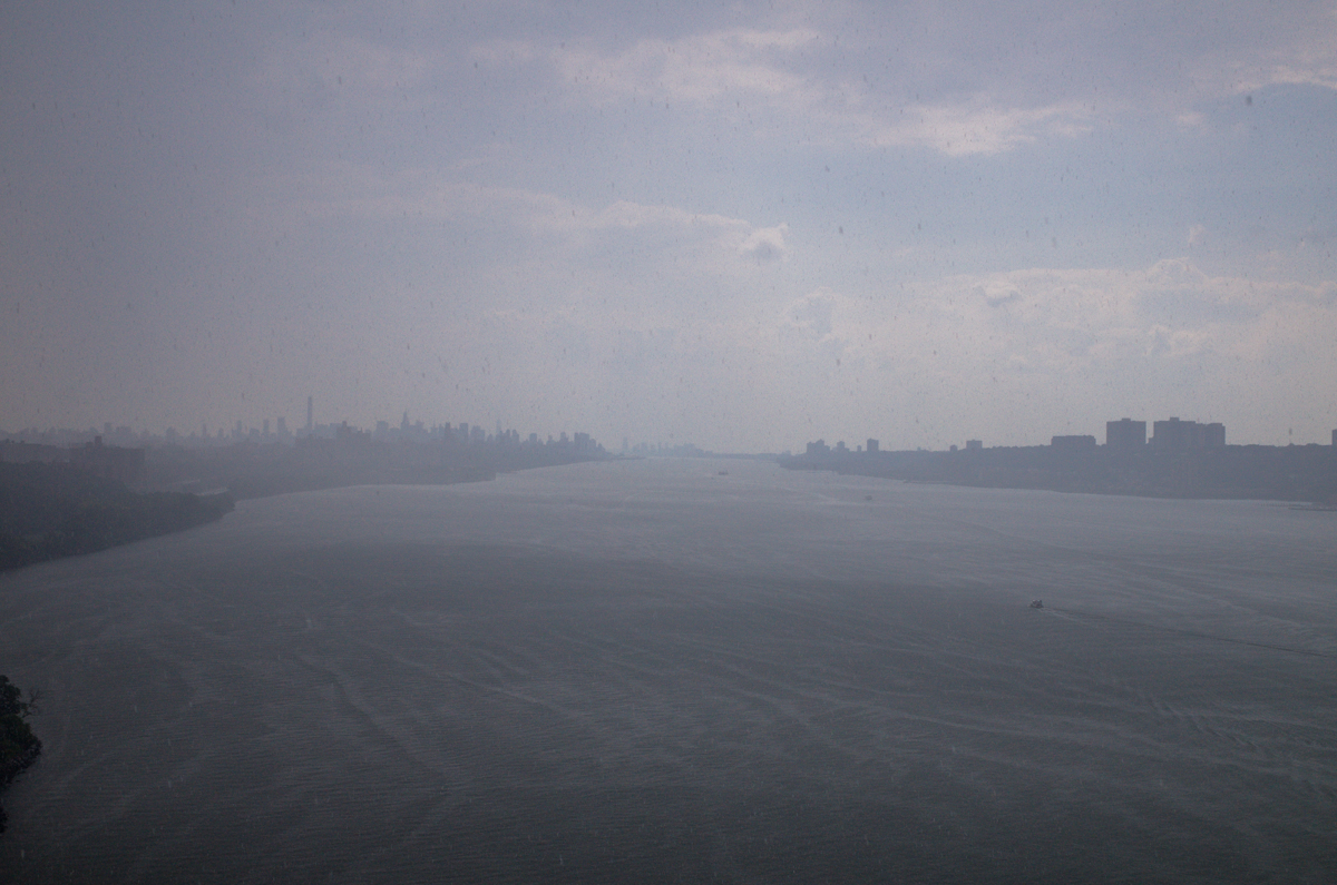As soon as I hit the last mile or two of River Road, a freak rain cloud decided to open up and completely dump massive drops of sideways rain. Angry, massive rain drops. Made it to back to the George Washington and got 3/4’s over and stopped to take that last frame. It’s pouring in that photo, but the rain is pushing sideways so hard, I was completely blocked by the bridge pillar.