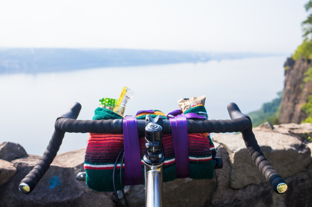 Smooth sailing through manhattan, up through harlem, over the George Washington bridge, up the beautiful tree lined River Road, up 9W a little ways, take my favorite trail from 9W over to State Line Lookout, shoot some photos of my new urban assault tourer and the snacks tucked into my mexican blanket, and keep rolling.