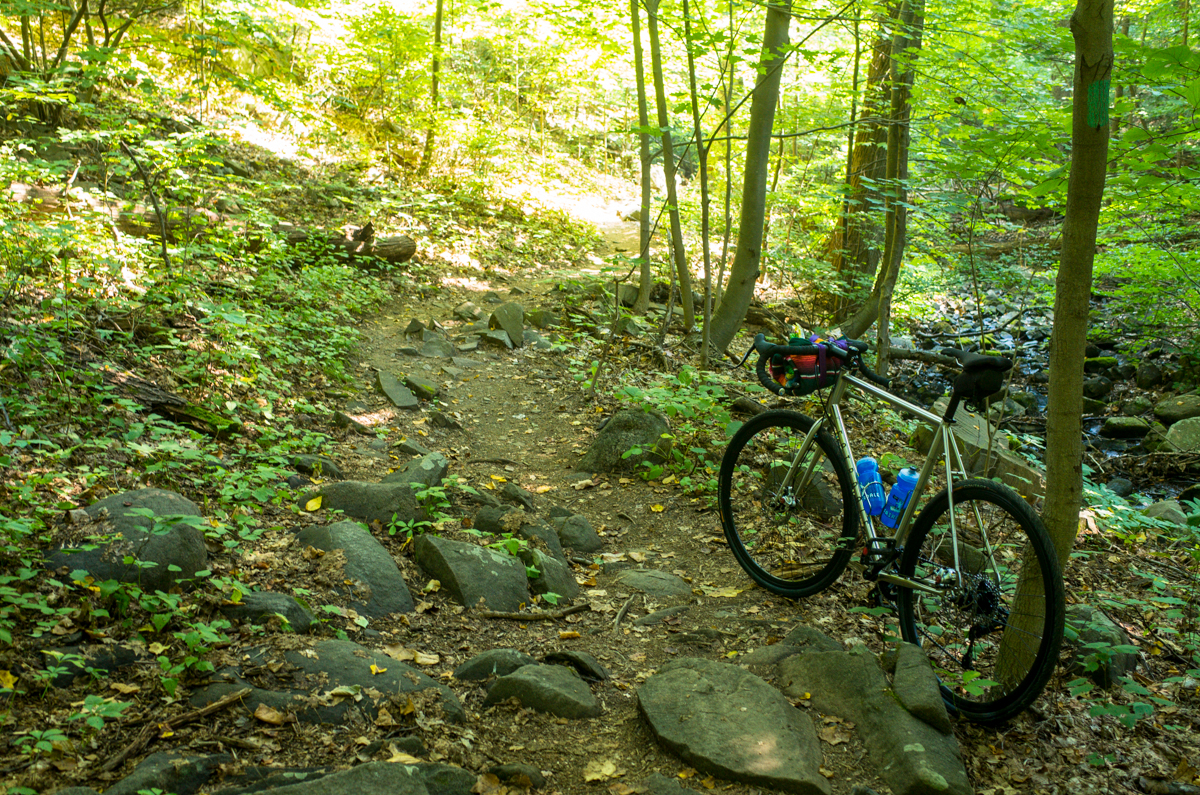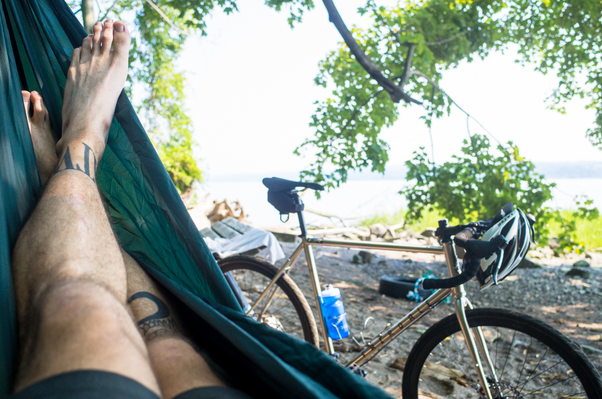 Woke up a couple hours later to the sound of the Hudson splashing on the shore front, packed everything up, and hiked out carrying my bike.