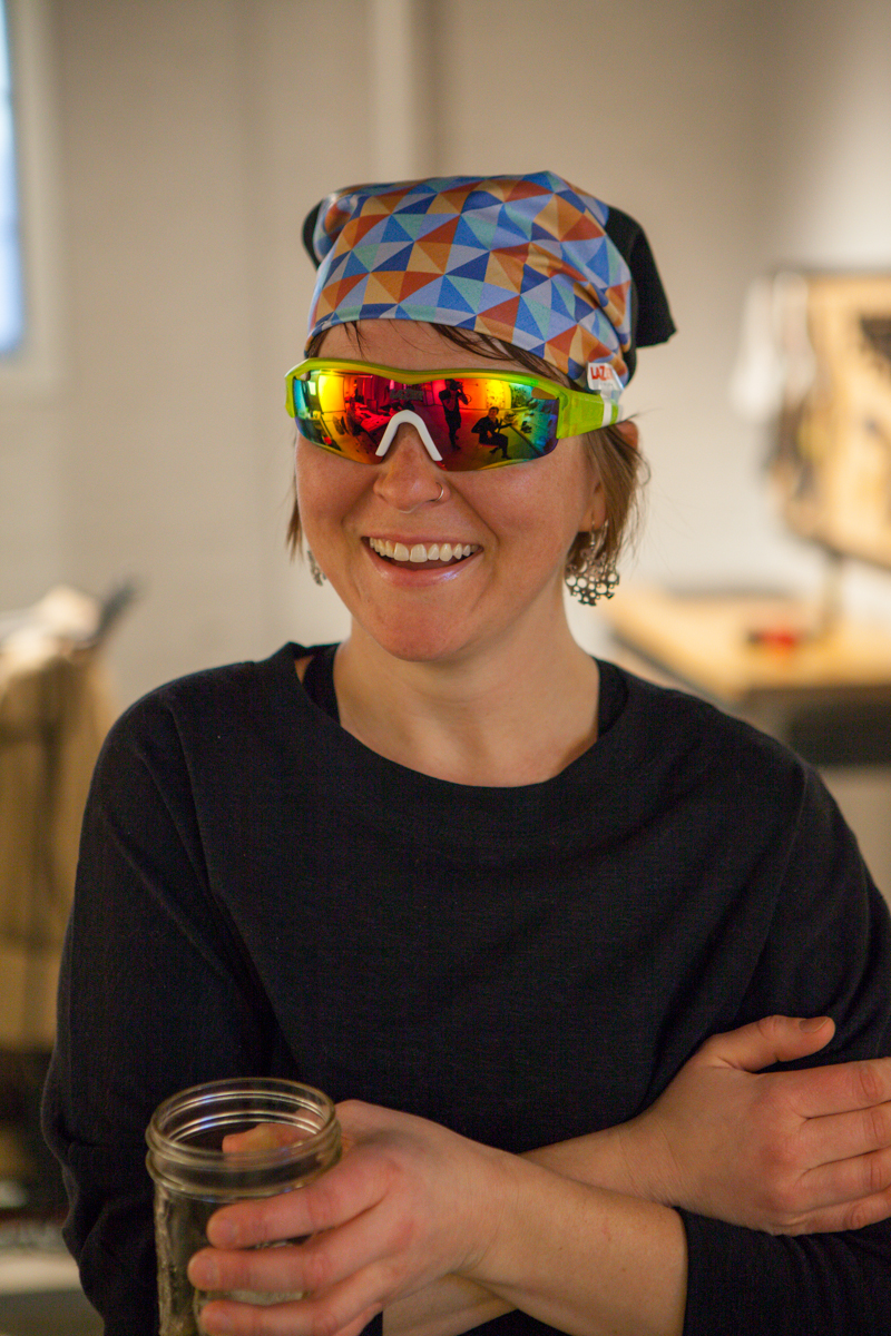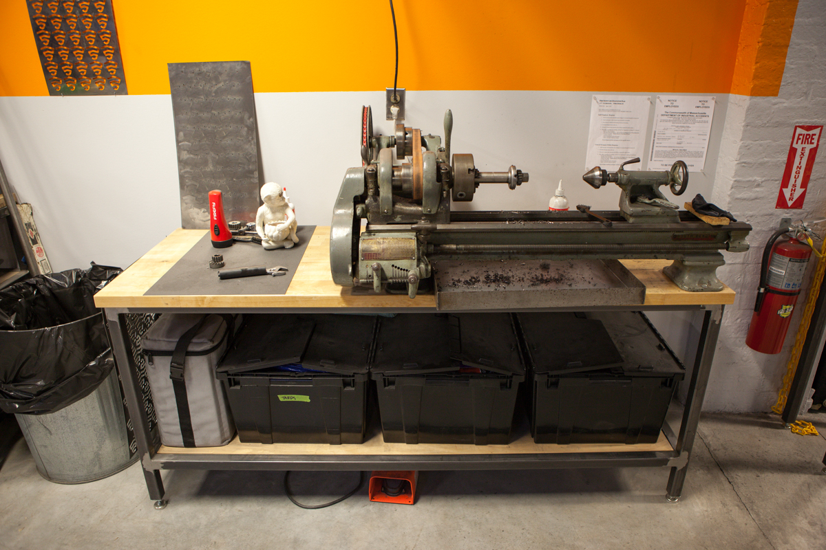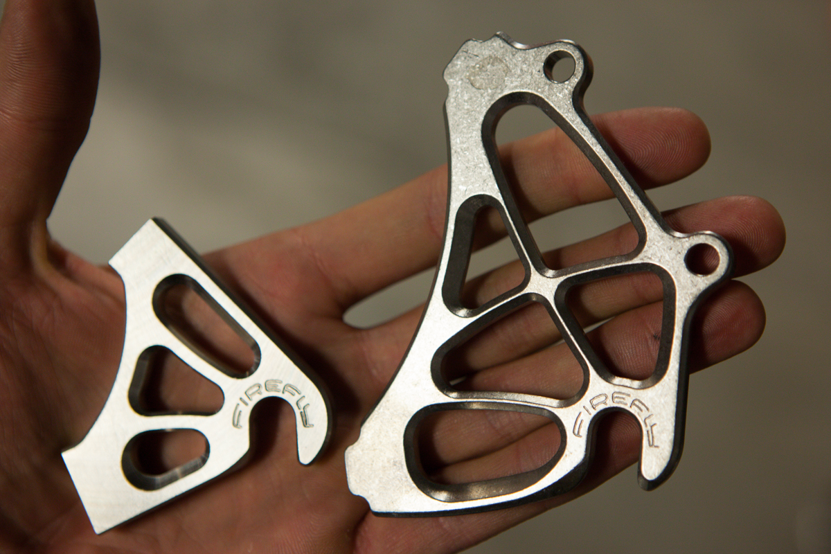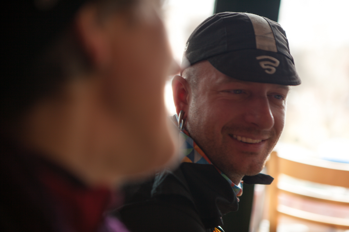 Firefly is Tyler Evans, Jamie Medeiros, and Kevin Wolfson. All incredibly smart, incredibly talented people. Jamie gave me small a shop tour as he was working on some loose ends. Jamie can be seen running the lathe, and showing me their custom anodization chart they made that shows the color spectrum they can reach. The fact that they have figured out the anodization process to this degree is absolutely insane. Not only have they mastered the color spectrum, they do it flawlessly. I was also lucky enough to be told by Tyler, “make yourself at home”, which I took as, “shoot as much as you’d like!”. Dan from Grimpeur Brother’s Coffee was in town for the Firefly Adventure Team launch, and was in house making coffee and taking photos of his loaner bike as well.
