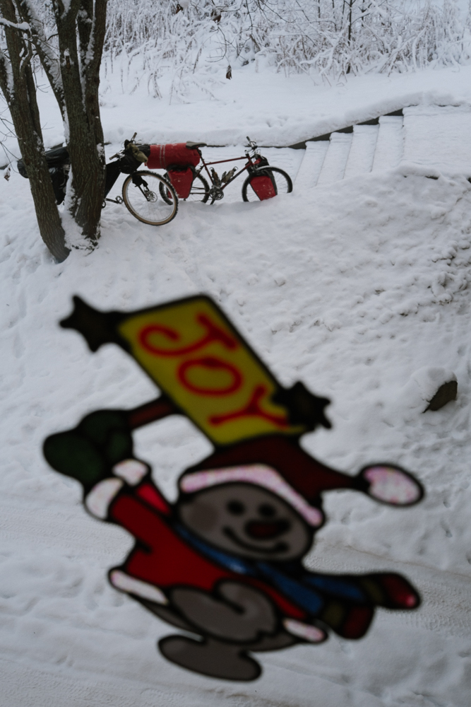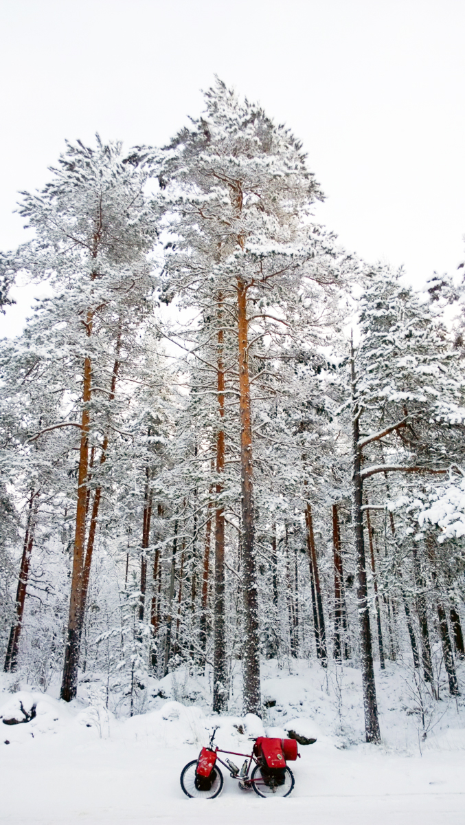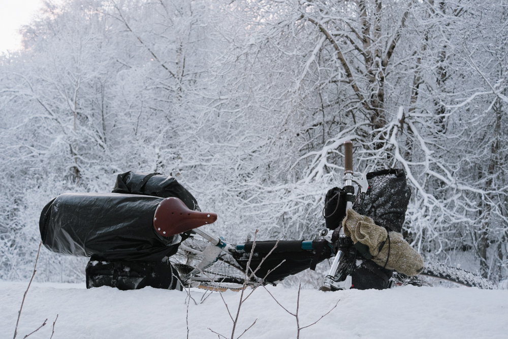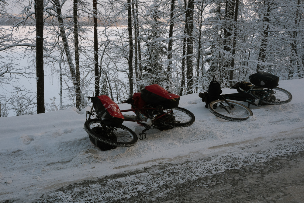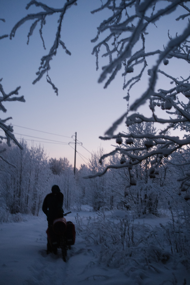 “The second night I woke up from cold and heard how benches were cracking in the forest, and the sounds came closer and closer and then something fell on the top of our tent — very loud. I freaked out and started calling Andrey, but he was still snoring peacefully. So I had to survive all this horror alone. It was the only time in my life when I actually felt this primal fear that makes you run away and never look back. But I told myself it was a big bird that just decided to sit on the tree next to our camp. And let’s imagine I run out of the tent, then what? I wouldn’t last long at that temperature anyway”.