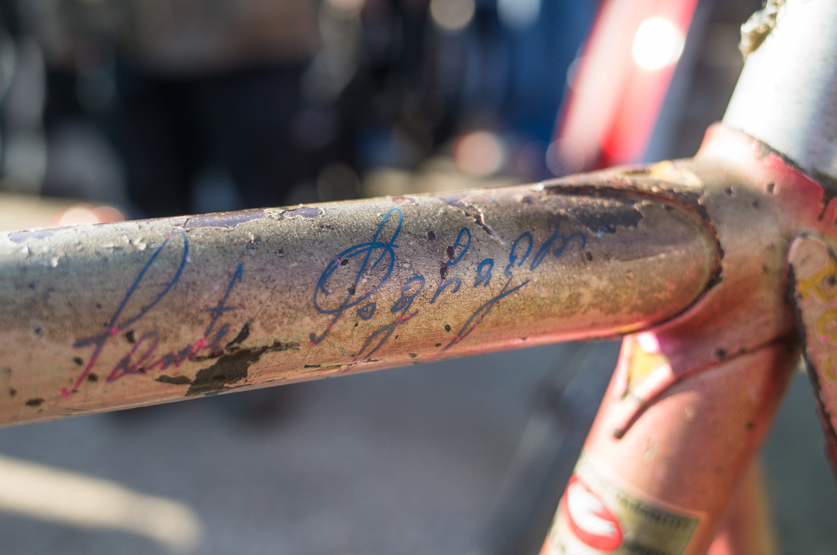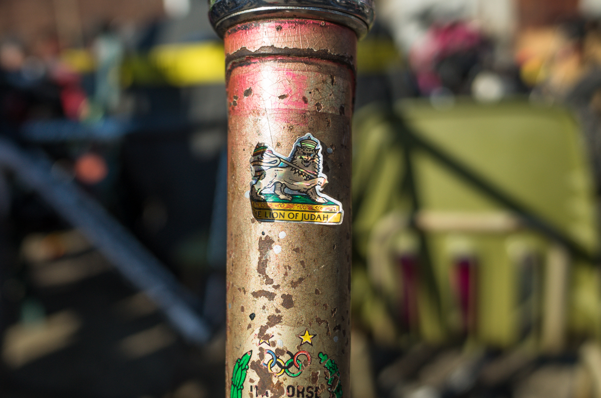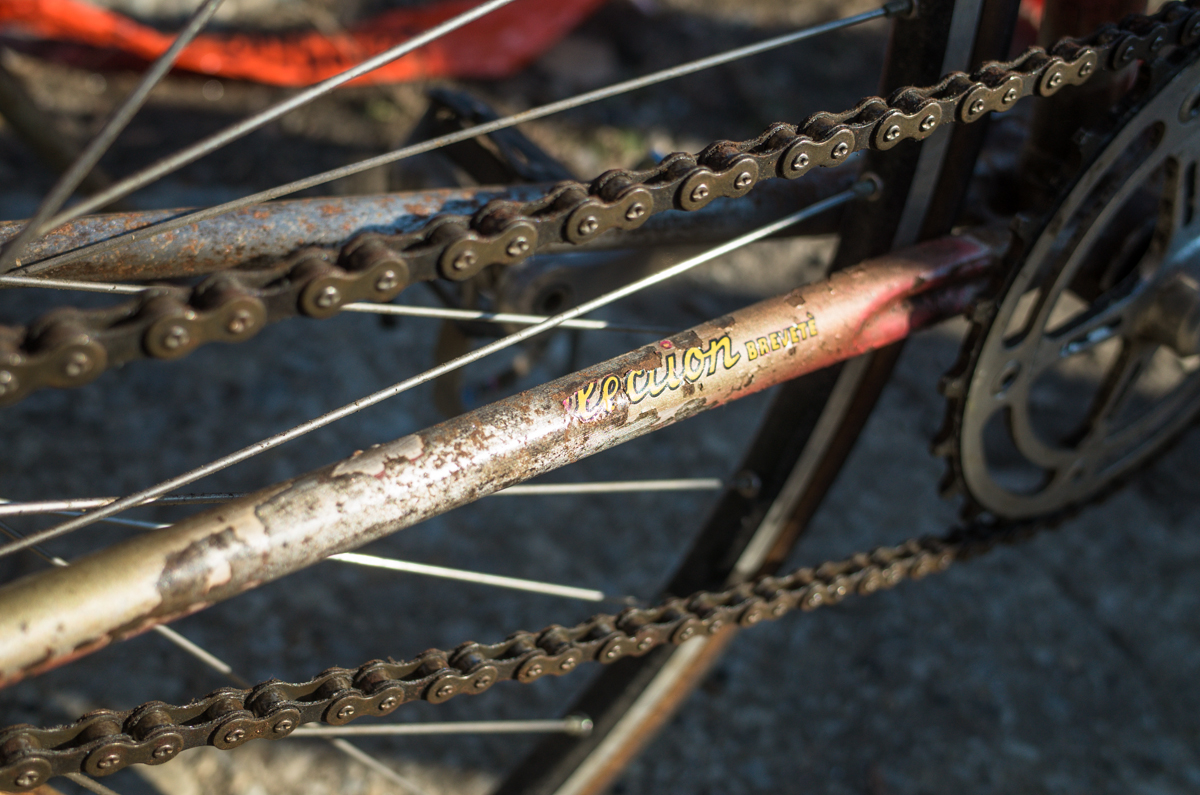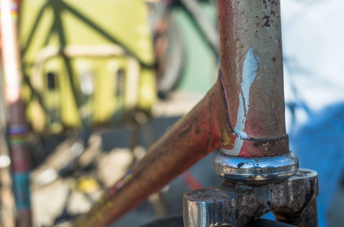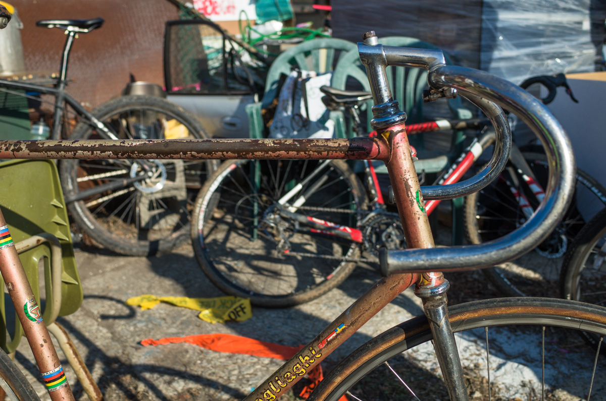 Dan Murphy is one of the founders of the infamous Landlords Cycling blog(RIP). Landlords was one of the most pristine pieces of melded cycling, messenger, and graffiti culture put into the perfect discerning voice ringing out from Philadelphia. Dan’s Pogliaghi has seen a small bit of internet love, but holy hell am I still so stoked on this bike. My good friend Simon of Transport Cycles/Hanford Cycles(ex Bilenky Cycles) replaced the non-drive side chainstay about 12 years ago, and it’s still unpainted. I was lucky enough to shoot some photos of Dan’s bike while we were spectating at this years Bilenky junkyard race.