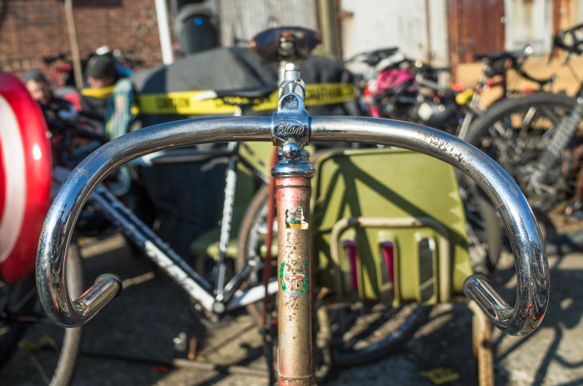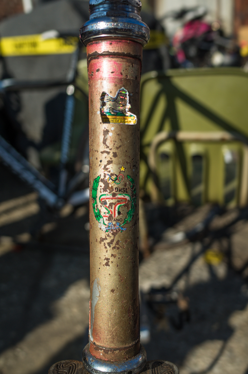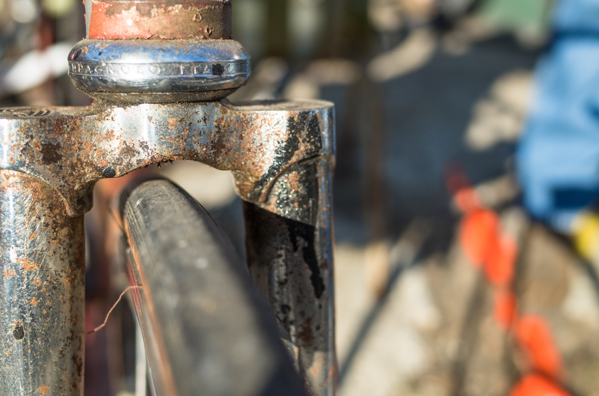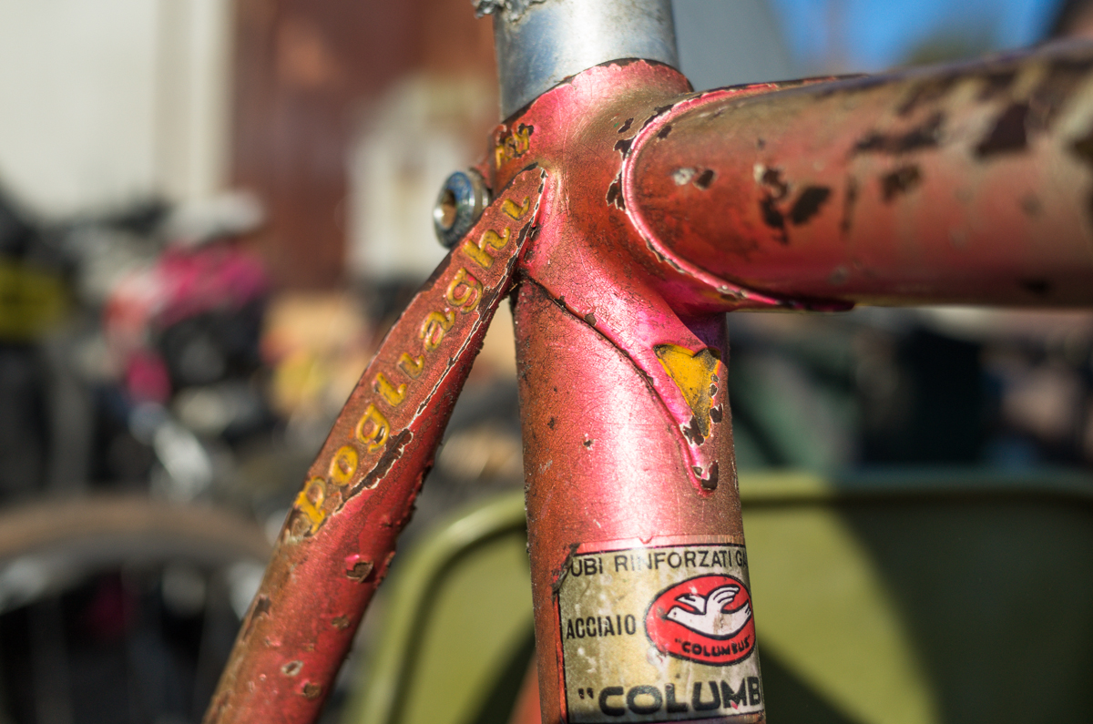 Dan Murphy is one of the founders of the infamous Landlords Cycling blog(RIP). Landlords was one of the most pristine pieces of melded cycling, messenger, and graffiti culture put into the perfect discerning voice ringing out from Philadelphia. Dan’s Pogliaghi has seen a small bit of internet love, but holy hell am I still so stoked on this bike. My good friend Simon of Transport Cycles/Hanford Cycles(ex Bilenky Cycles) replaced the non-drive side chainstay about 12 years ago, and it’s still unpainted. I was lucky enough to shoot some photos of Dan’s bike while we were spectating at this years Bilenky junkyard race.