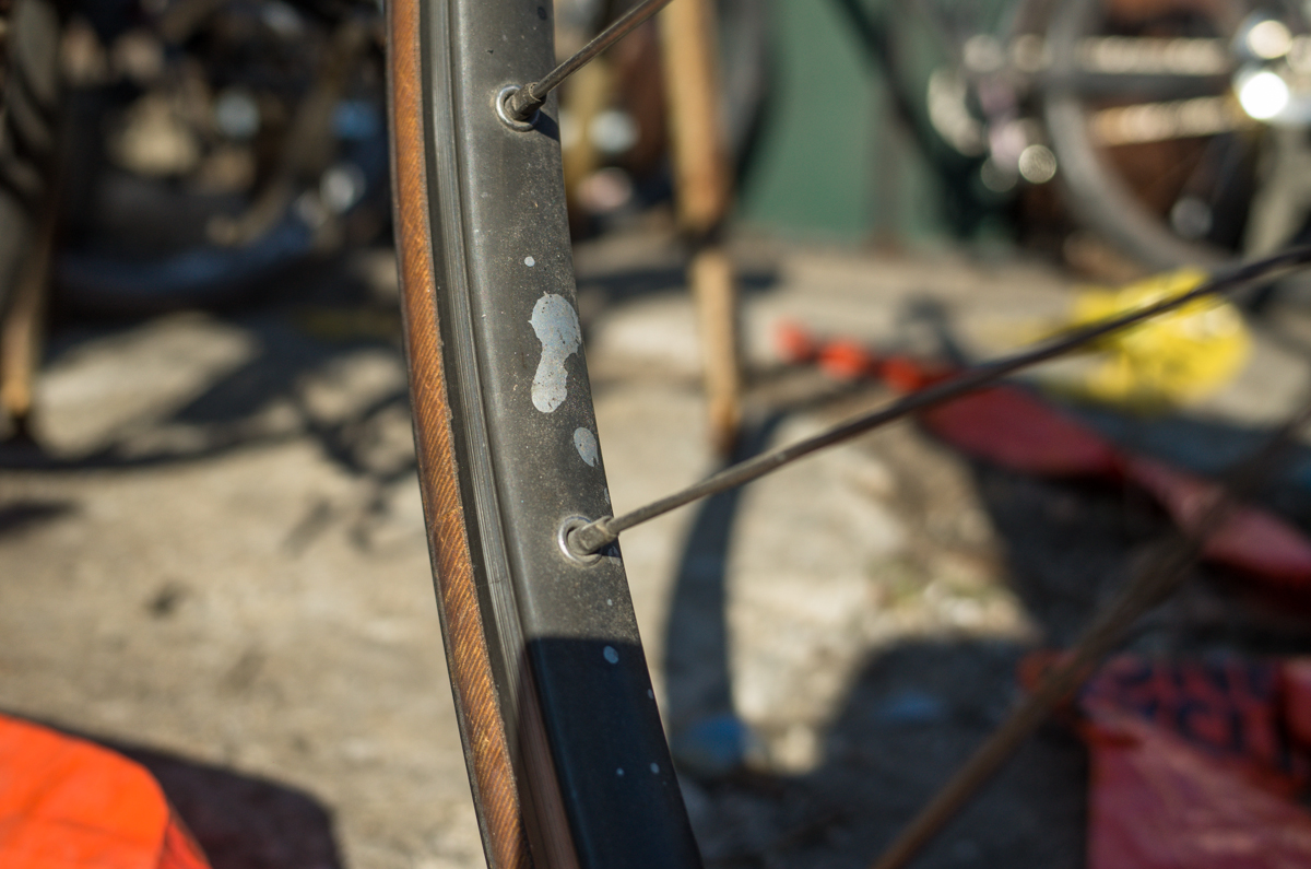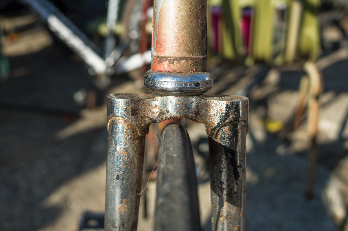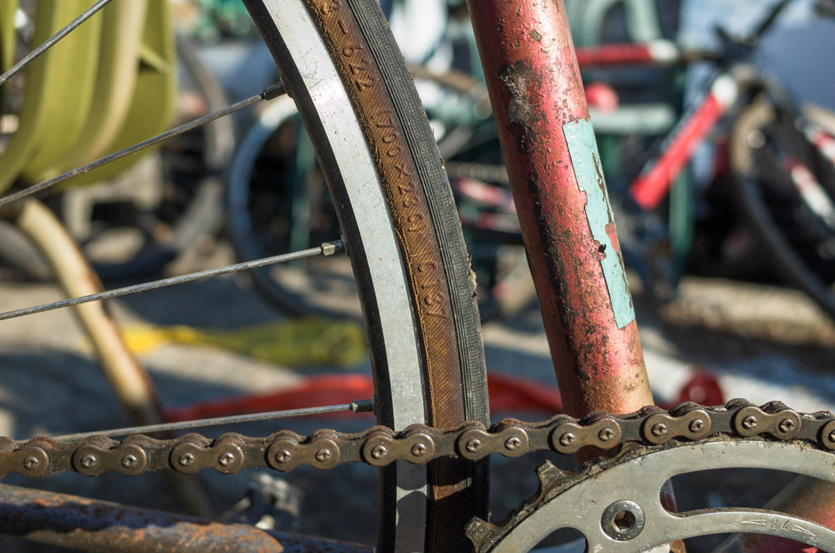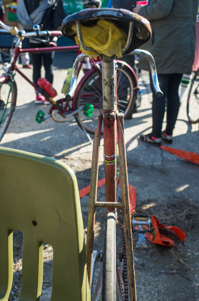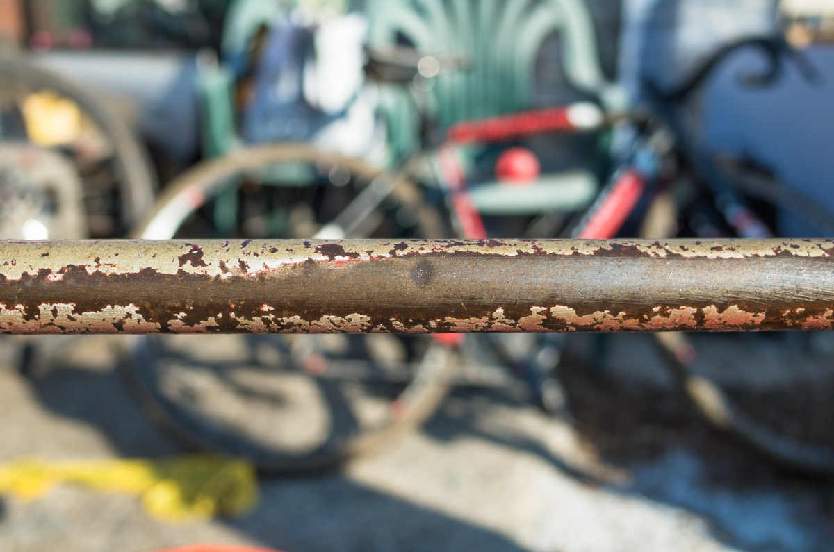 Dan Murphy is one of the founders of the infamous Landlords Cycling blog(RIP). Landlords was one of the most pristine pieces of melded cycling, messenger, and graffiti culture put into the perfect discerning voice ringing out from Philadelphia. Dan’s Pogliaghi has seen a small bit of internet love, but holy hell am I still so stoked on this bike. My good friend Simon of Transport Cycles/Hanford Cycles(ex Bilenky Cycles) replaced the non-drive side chainstay about 12 years ago, and it’s still unpainted. I was lucky enough to shoot some photos of Dan’s bike while we were spectating at this years Bilenky junkyard race.