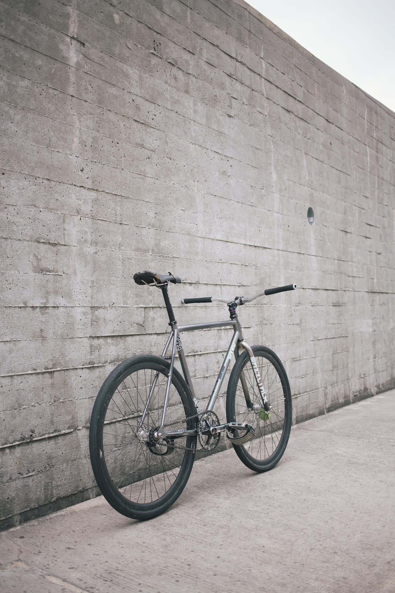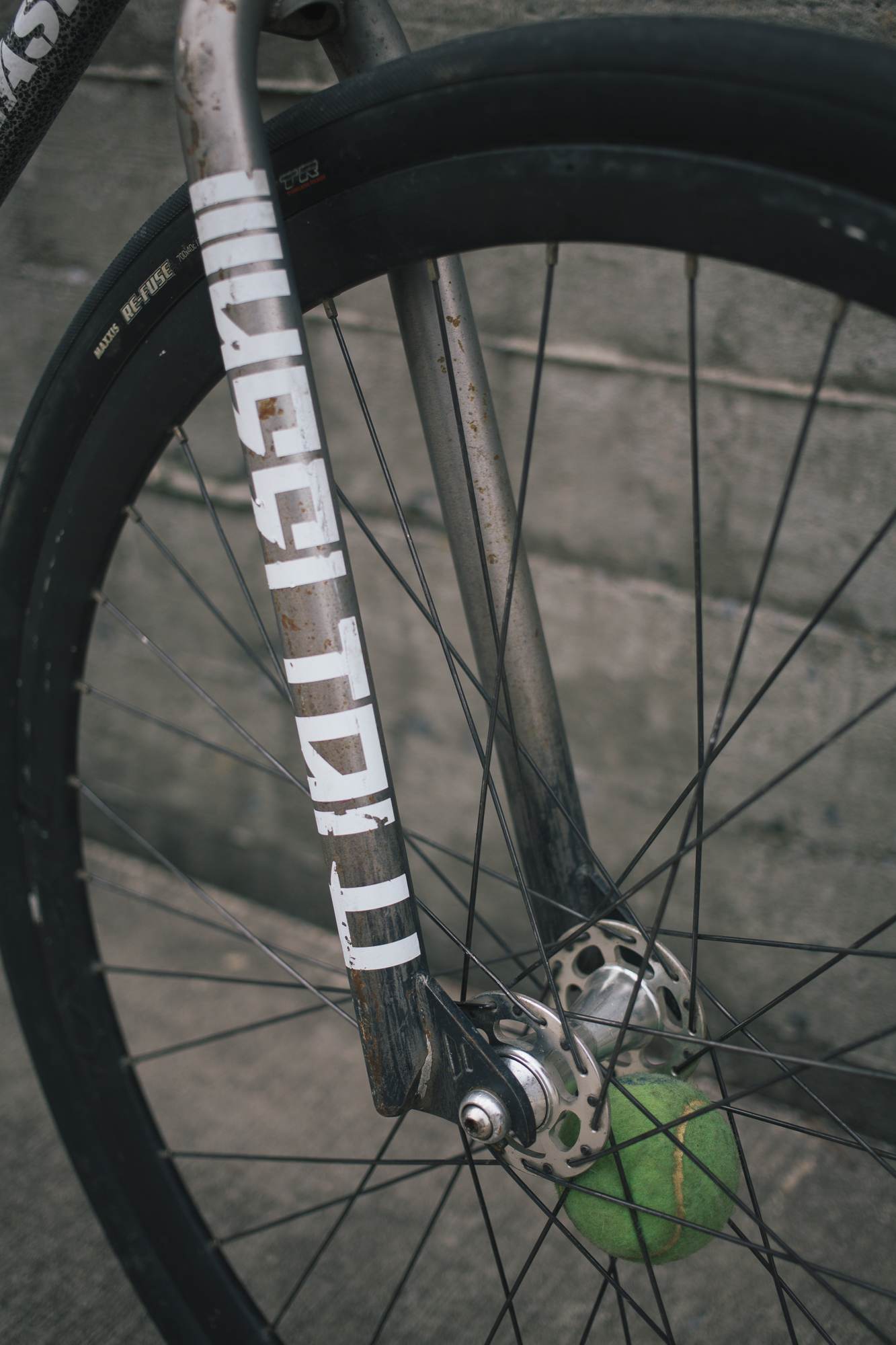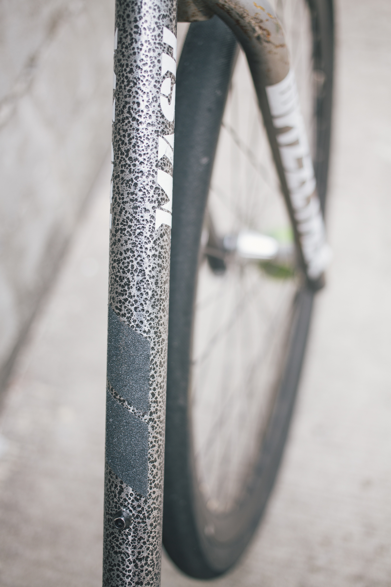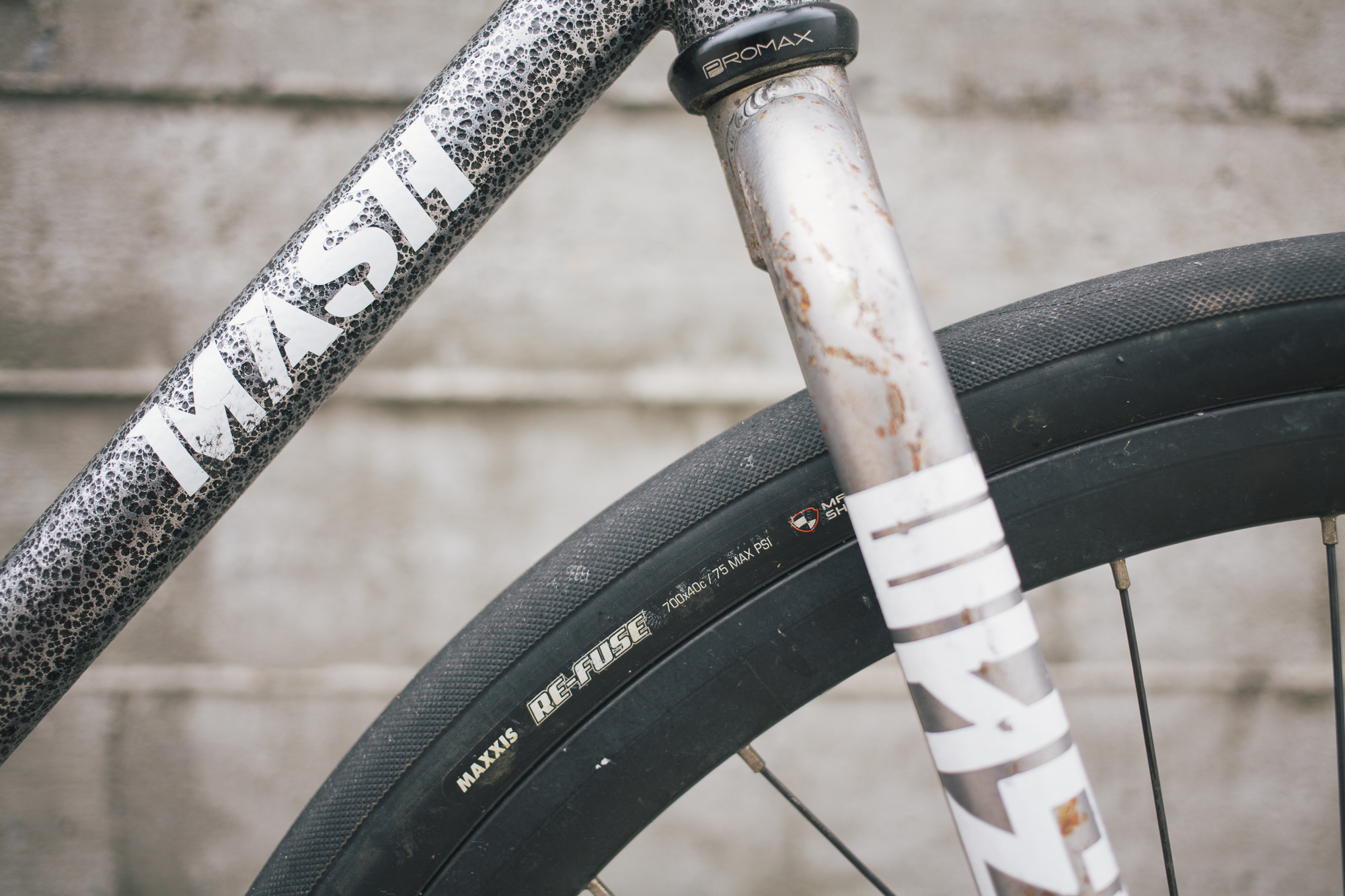 This MASH steel frame, built up by Matt to RIP with some fat 40c tires. Matt puts this bike through the ringer daily. We were lucky enough to take some shots of this build and really talk to Matt about everything he loves about this bike.