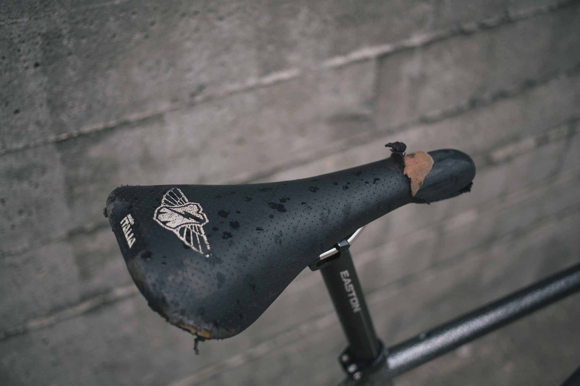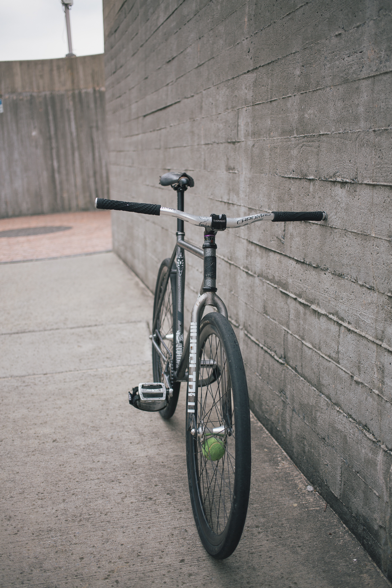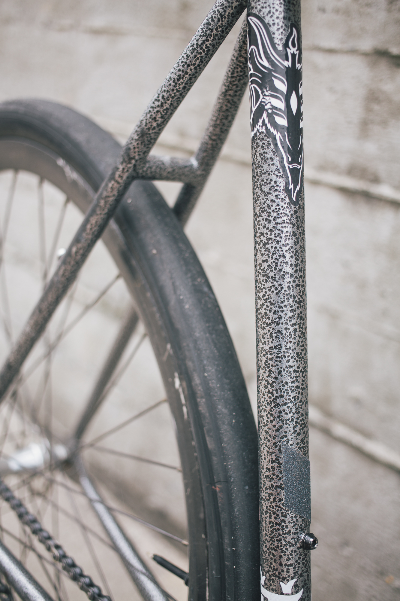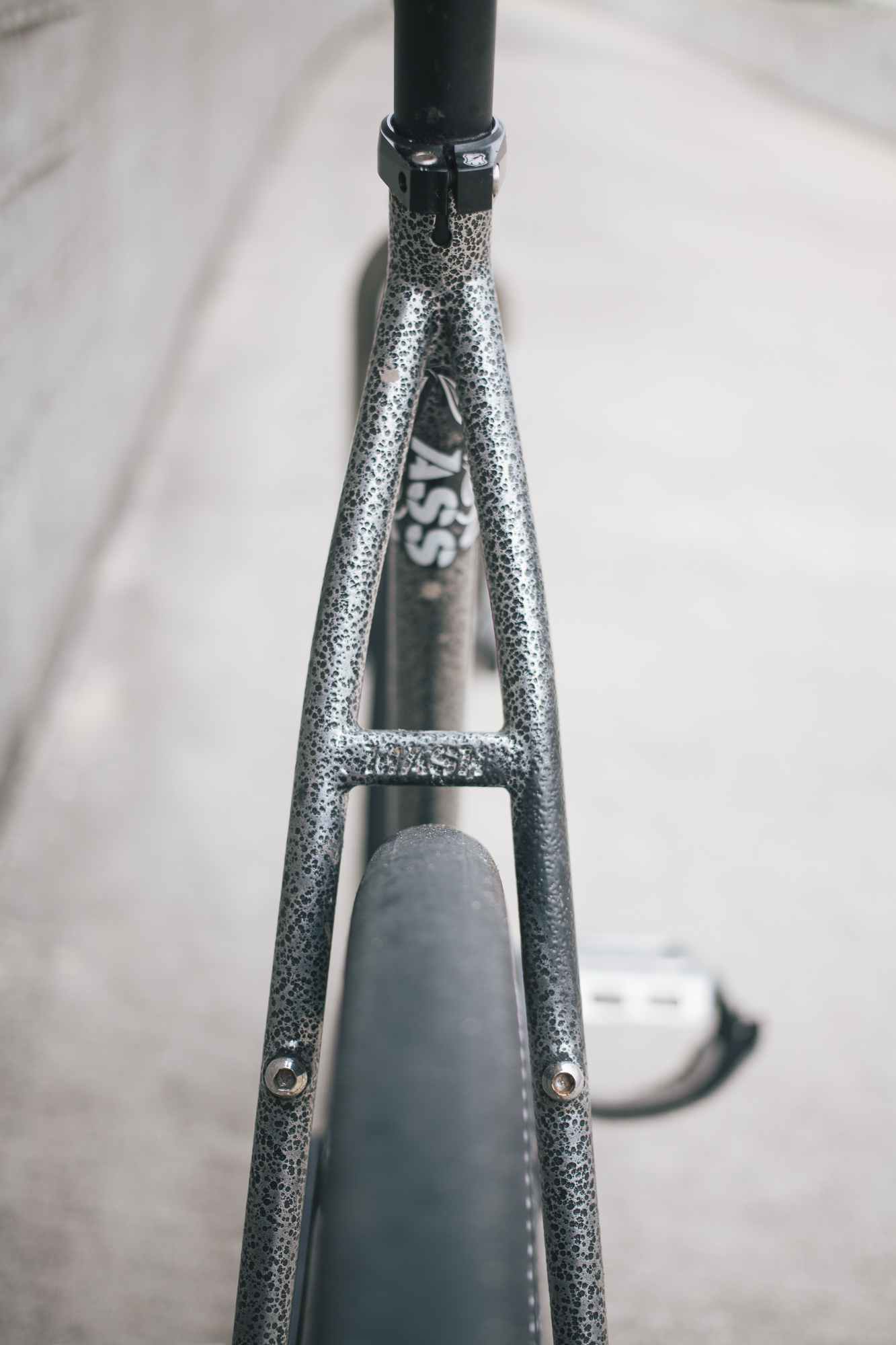 This MASH steel frame, built up by Matt to RIP with some fat 40c tires. Matt puts this bike through the ringer daily. We were lucky enough to take some shots of this build and really talk to Matt about everything he loves about this bike.