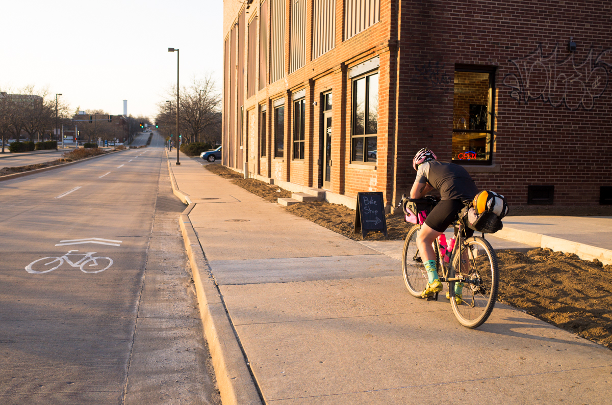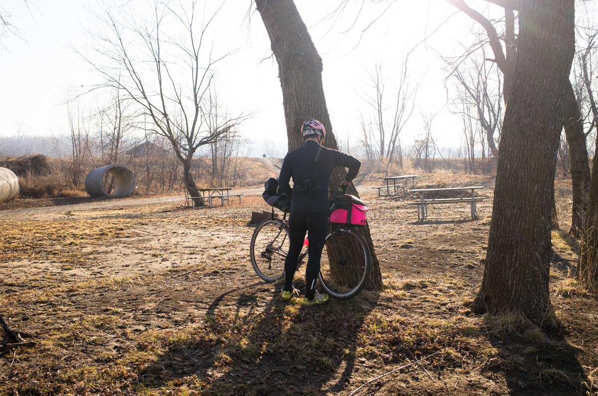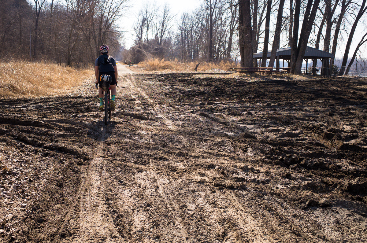 We passed a bike shop on our way into Jefferson City, we should go check that out! It just so happened, that day, the shop we passed was celebrating their opening. They were having a full on ribbon cutting celebration with the city. We rolled up to their ribbon preparation, and some open arms and open ears and a lot of “You guys are crazy for trying that this early in the season!”. They fed us some beers and asked us to stay. I stood by my bike and noticed the salt stains that had shown up on my saddle over the last couple days.