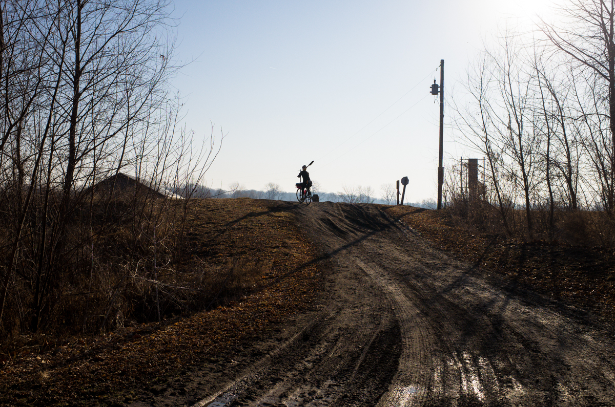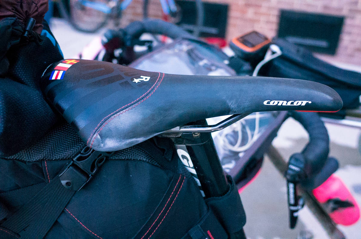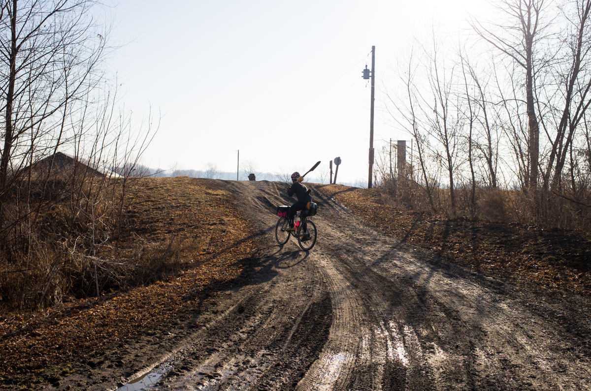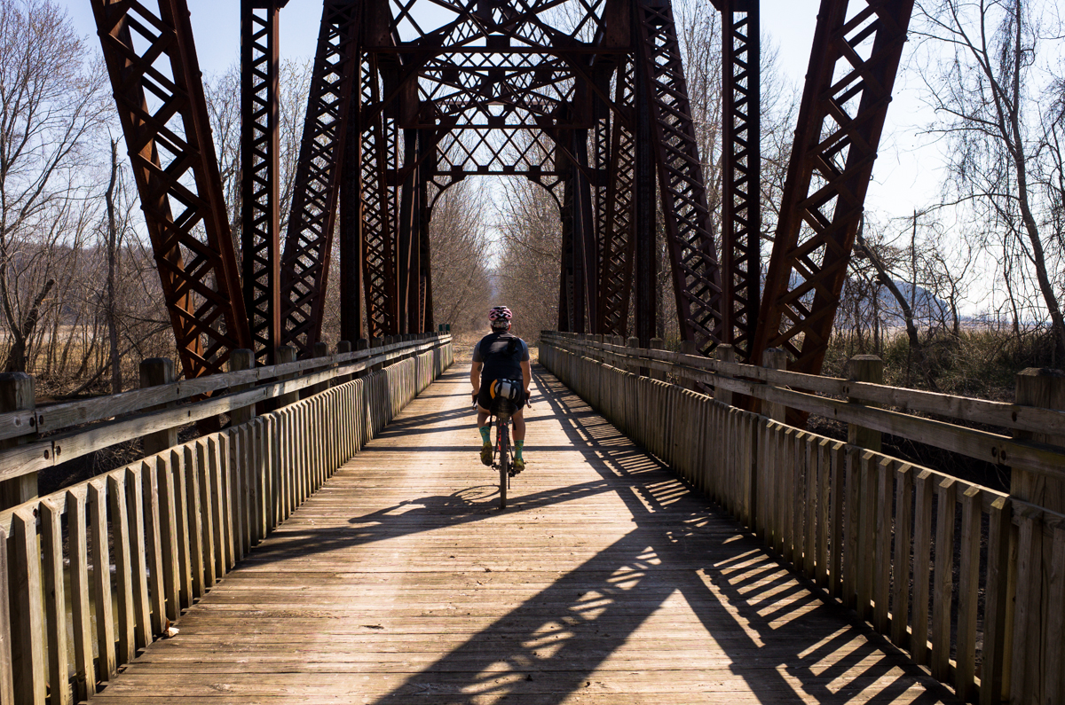 We passed a bike shop on our way into Jefferson City, we should go check that out! It just so happened, that day, the shop we passed was celebrating their opening. They were having a full on ribbon cutting celebration with the city. We rolled up to their ribbon preparation, and some open arms and open ears and a lot of “You guys are crazy for trying that this early in the season!”. They fed us some beers and asked us to stay. I stood by my bike and noticed the salt stains that had shown up on my saddle over the last couple days.