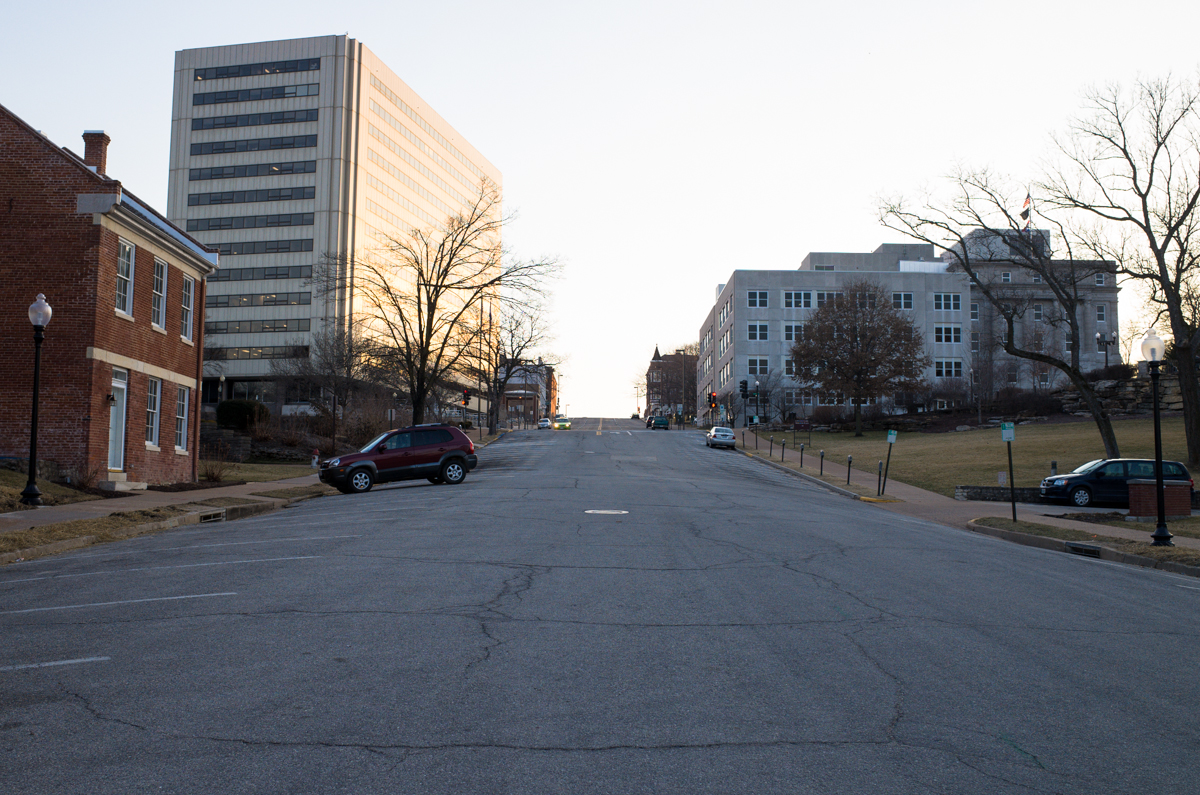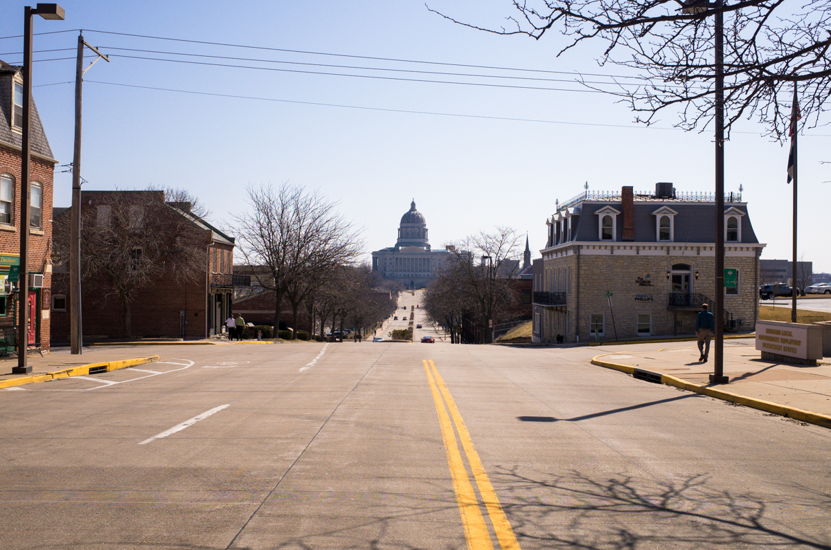 Four hours, and a hair over 30 miles later, we found ourselves in a hilly Jefferson City, MO after I search the term ‘Vegetarian’ on Google Maps along our route. I swear there’s vegetarian sandwich shop right on the corner of Lafayette and High St!! Nope, there isn’t. It turned into some sort of office. With a half dozen people inside on their laptops, looking at us in spandex as we stare through the glass door through cupped hands.
