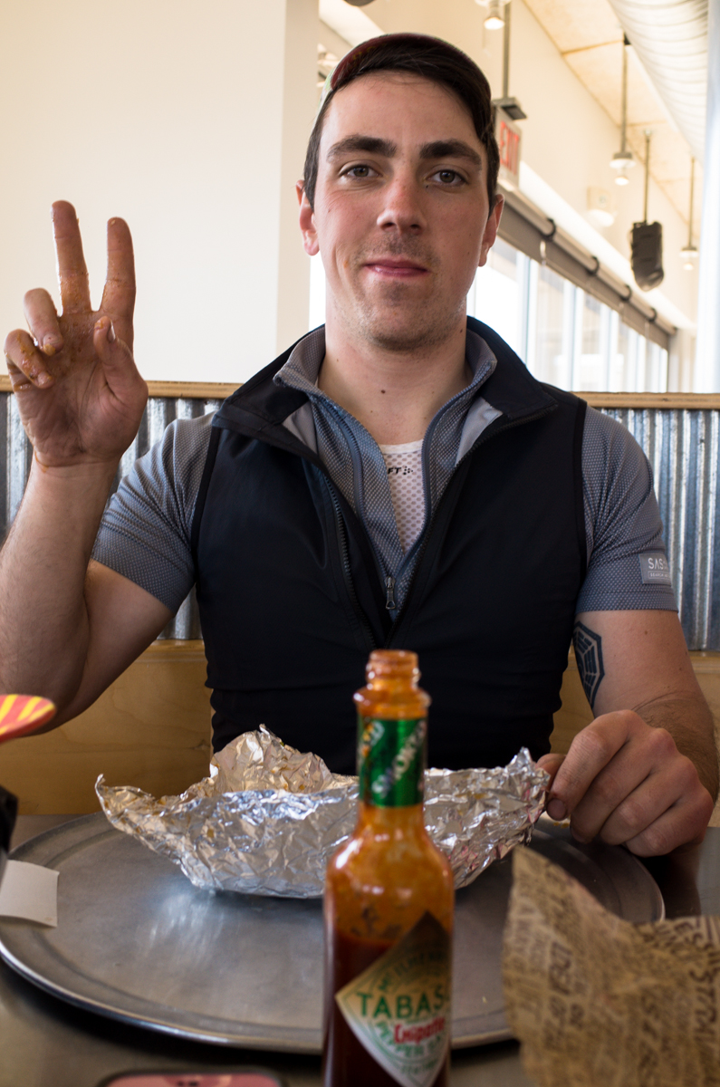 We came back to earth a bit and sat outside Chipotle for about 30 minutes. What now? How do we tell the Bicycling Magazine audience that we had been live Instagramming our trip with? How do we deal with the tail between our legs? I sat in the sun and let my brain shift out of suffering/riding/survival mode into rational thought, into real thought, back into dealing with a reality where people are depending on you. Back into real life where I knew there were people that cared whether or not we finish, if we were alive, if we even ate lunch. The sun was burning my skin as I sat there and figured out how to tell the story of being broken by this trip. The feeling of being broken was taking precedence unfortunately and I needed more time to come back to, and to think real thoughts.