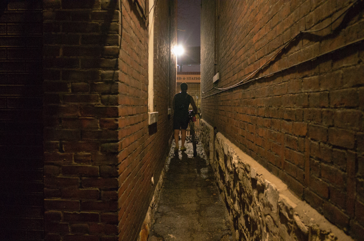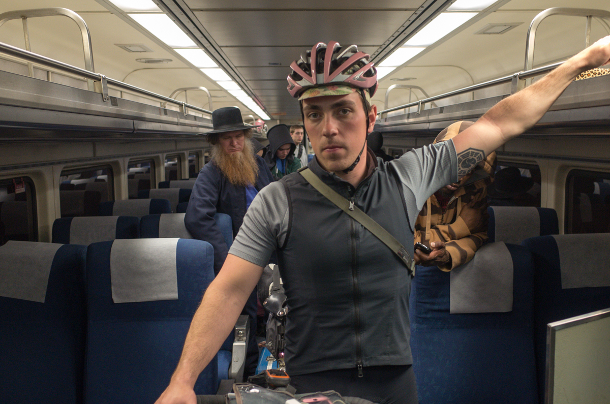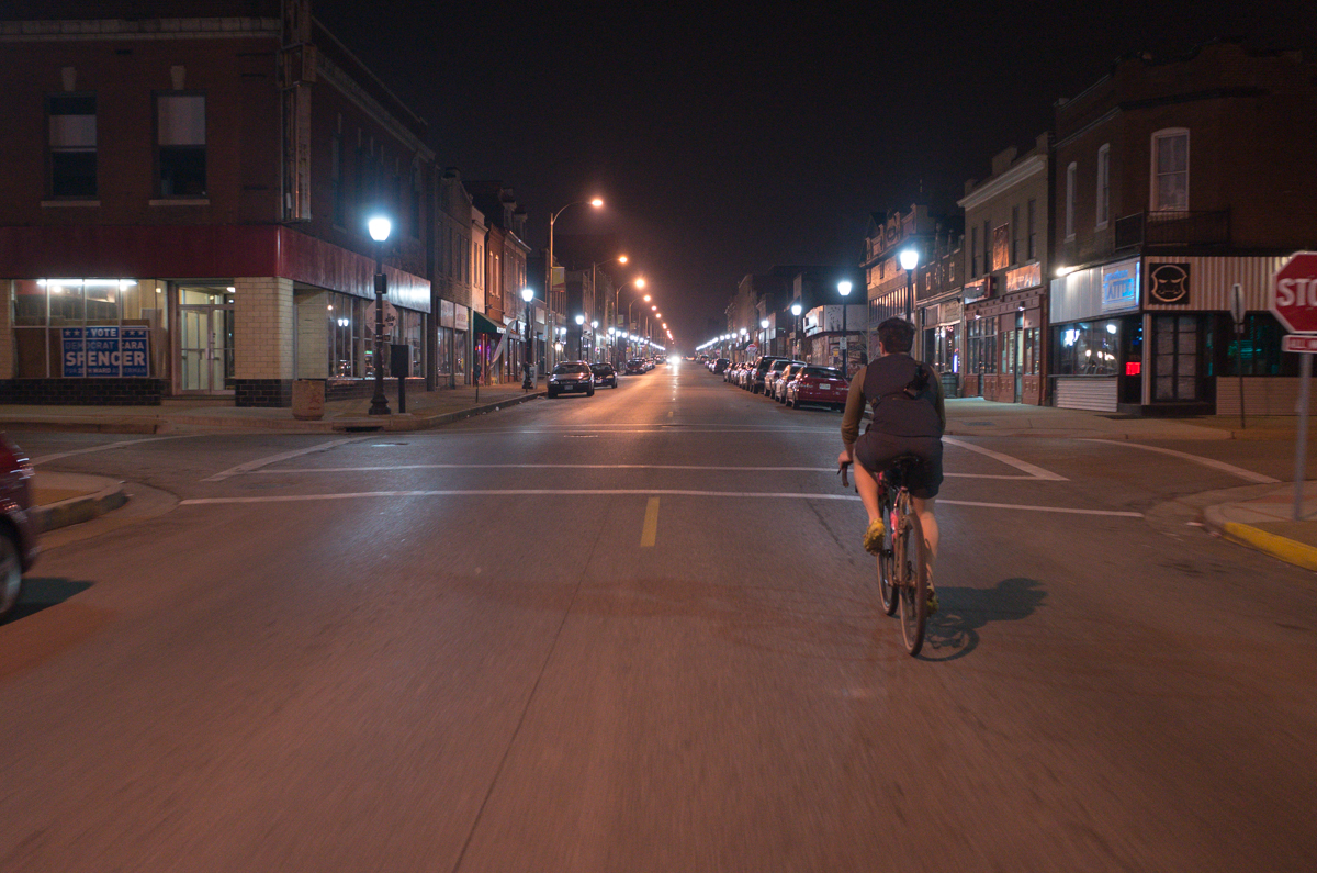 We eventually rode over to the train station. A small station, with one train a day heading towards St. Louis. A handful of mennonites and some people selling the word of god on the sidewalk. Jefferson City is quite endearing. I had an idea post-burrito, when I realized I looked like a total trainwreck. We were both photographers. We should take portraits of each other, and share our experience of being broken by a plan that didn’t quite finish and, well, ran us into the ground. We had no idea the Bicycling Mag audience would be so receptive and so amazingly supportive to our stories(Mine and Brent’s).