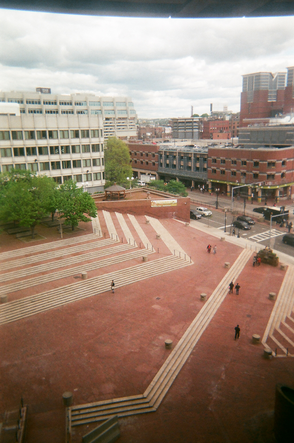 7- The architecture of Govt Center commons is best appriciated from above where you can see the zig zagging lines of all the stair sets. This is looking toward the North End of the city. The tall building on the top right is the ventilation building for the Callahan Tunnel which also some some interesting architecture.