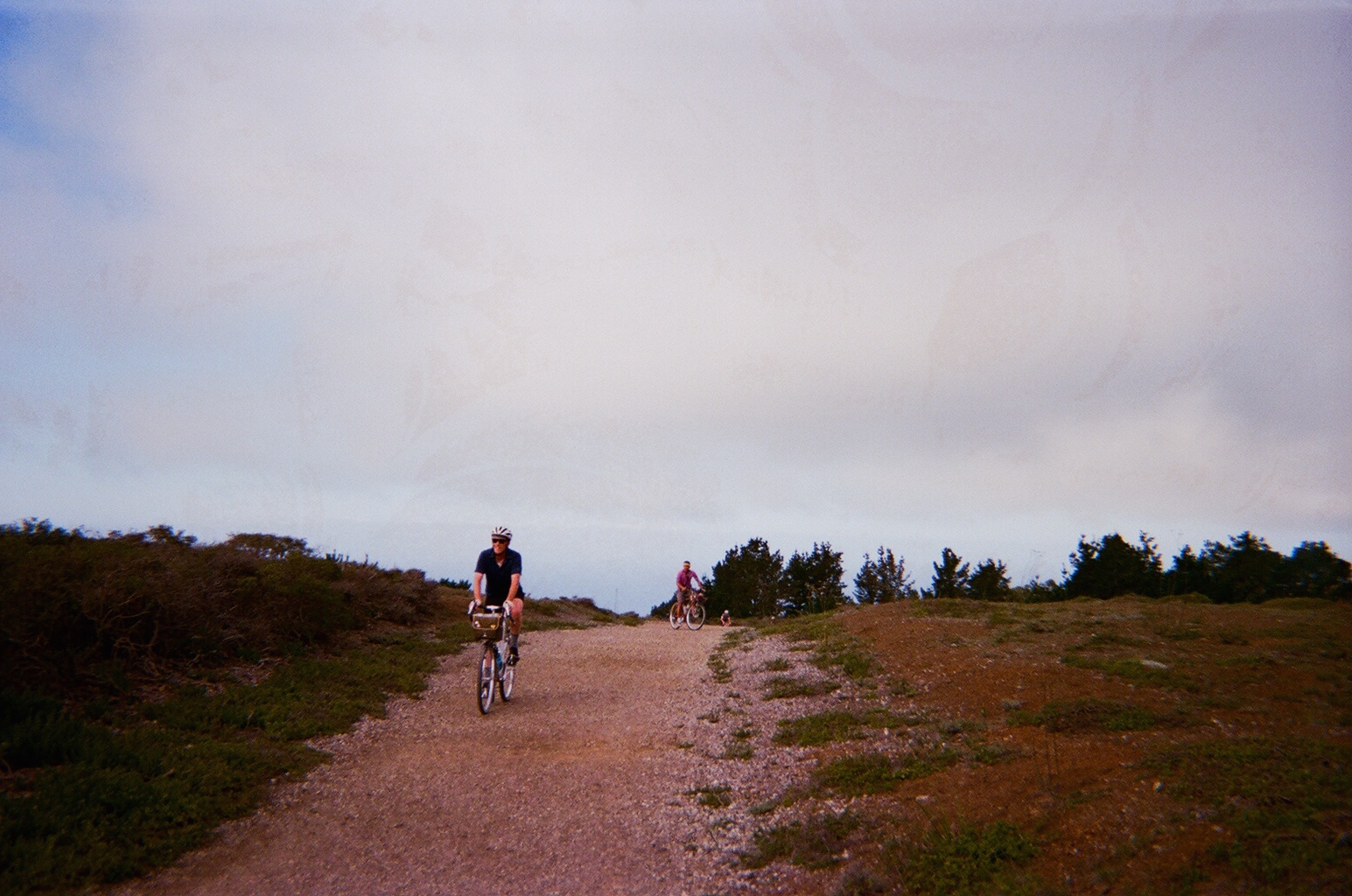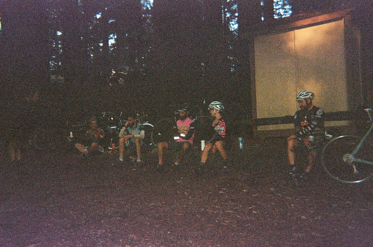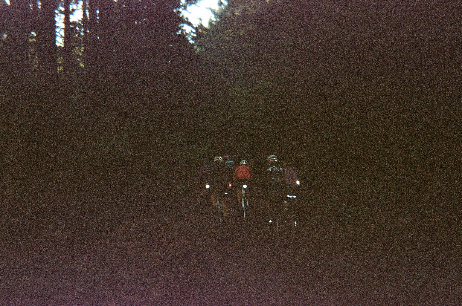 After this food stop, we climbed Planet of the Apes and descended on dirt to Montara and Moss Beach. We continued flowing through onroad and offroad paths, passing legendary big-wave surf spot Maverick’s, and arrived to Half Moon Bay for lunch stop number two. Fueled up on sandwiches and the sounds of some guy’s half-decent cover songs, we chased daylight up our biggest climb of the day on damp paths through tall redwood trees. Dusk had fallen at the summit of the Purisima Creek trail, so our ripper down Kings Mountain Road was in the cold blue light. We cut through the town of Woodside in the dark and hopped on Caltrain back to SF, which was hectic with so many bikes.