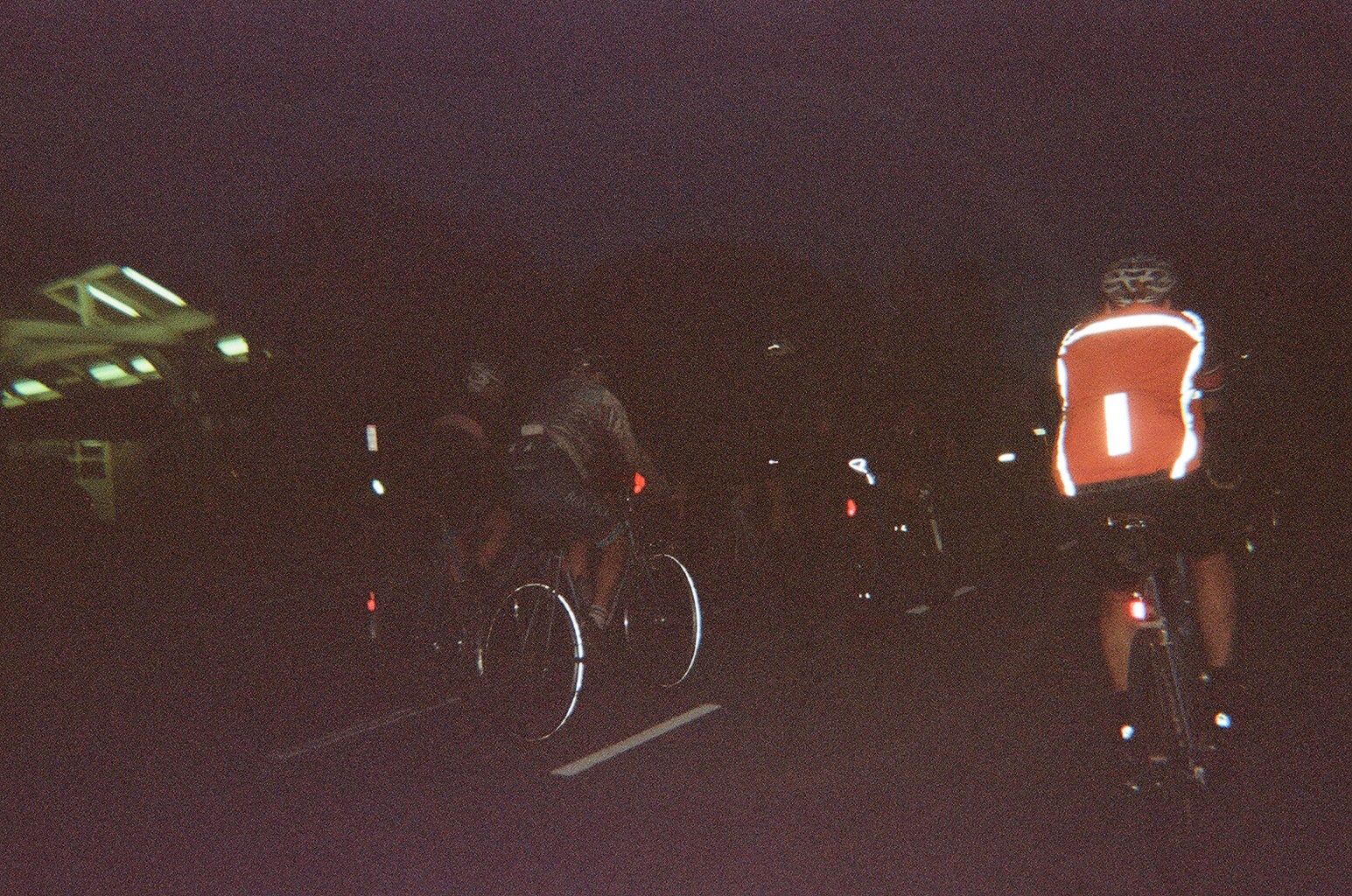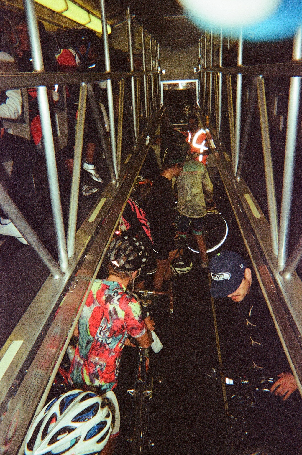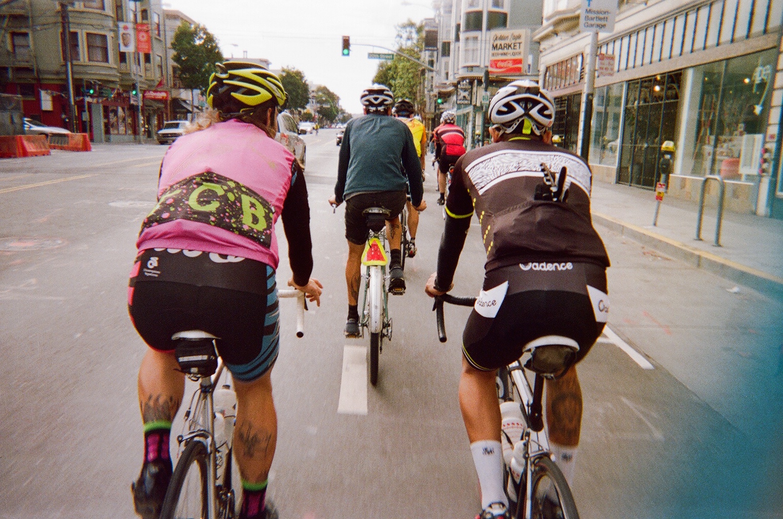 After this food stop, we climbed Planet of the Apes and descended on dirt to Montara and Moss Beach. We continued flowing through onroad and offroad paths, passing legendary big-wave surf spot Maverick’s, and arrived to Half Moon Bay for lunch stop number two. Fueled up on sandwiches and the sounds of some guy’s half-decent cover songs, we chased daylight up our biggest climb of the day on damp paths through tall redwood trees. Dusk had fallen at the summit of the Purisima Creek trail, so our ripper down Kings Mountain Road was in the cold blue light. We cut through the town of Woodside in the dark and hopped on Caltrain back to SF, which was hectic with so many bikes.