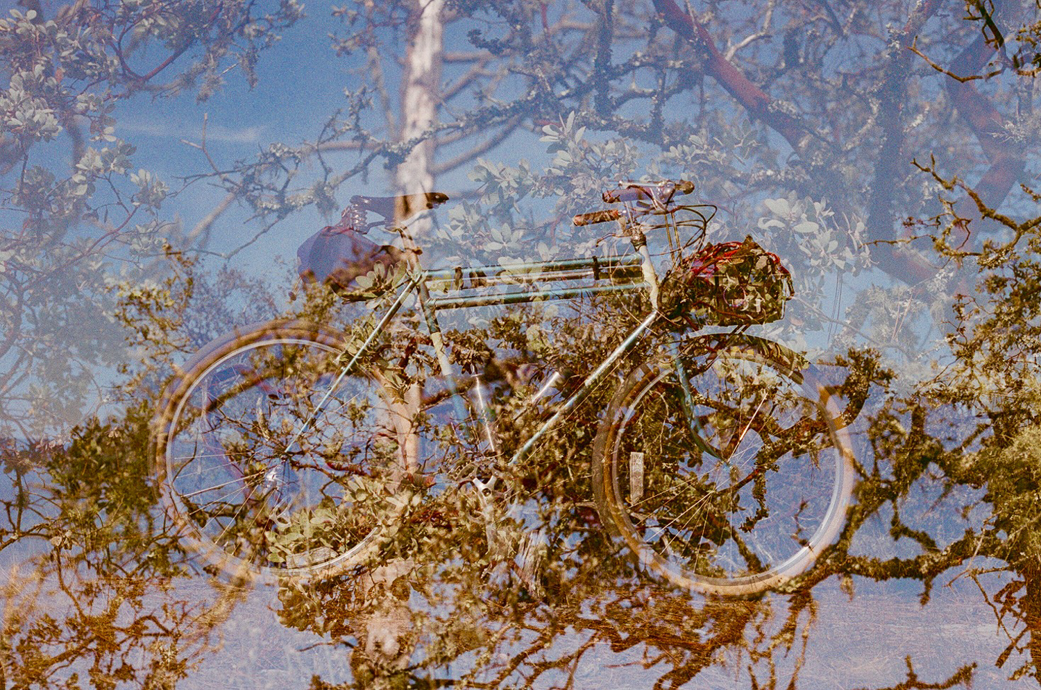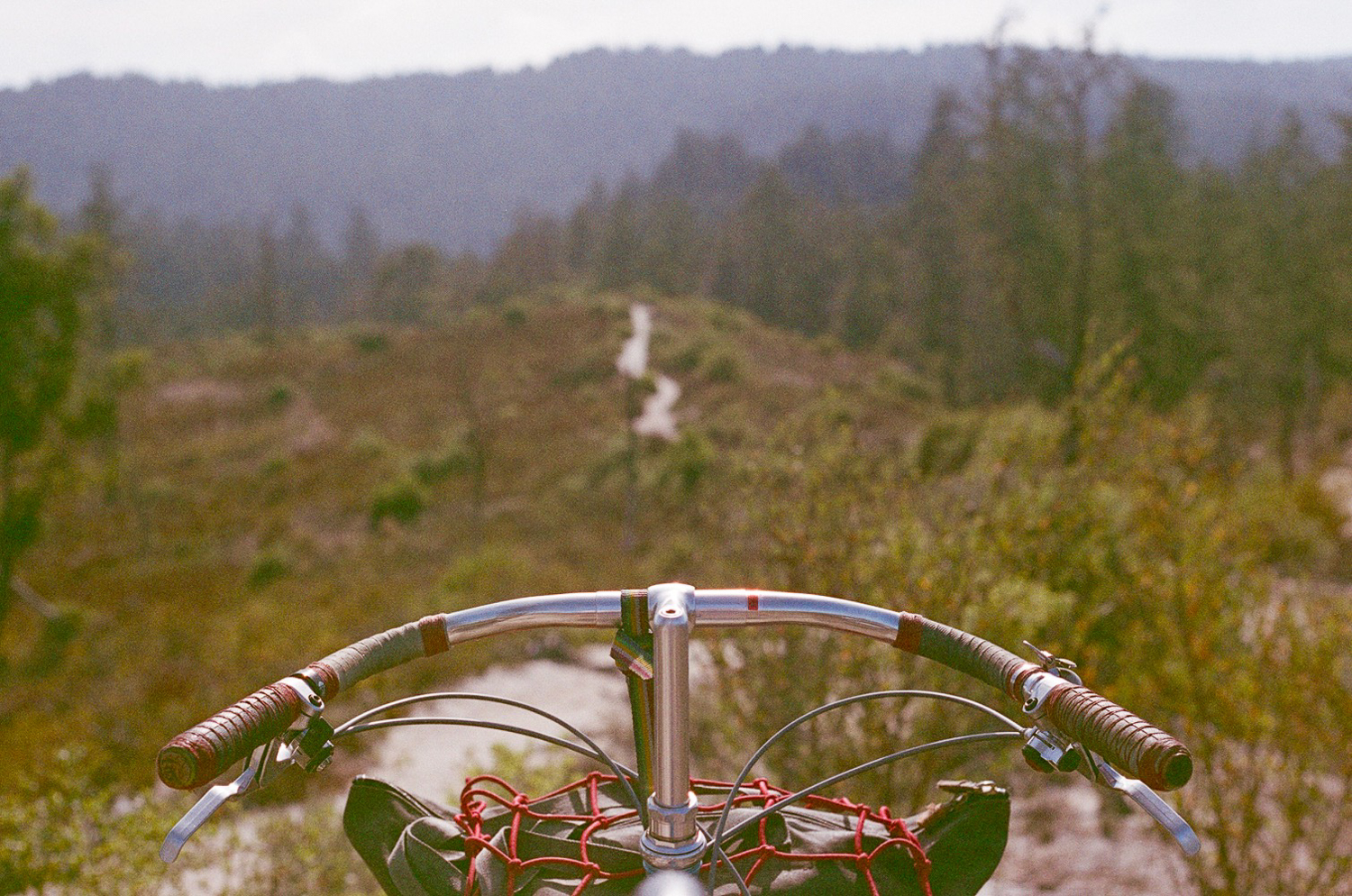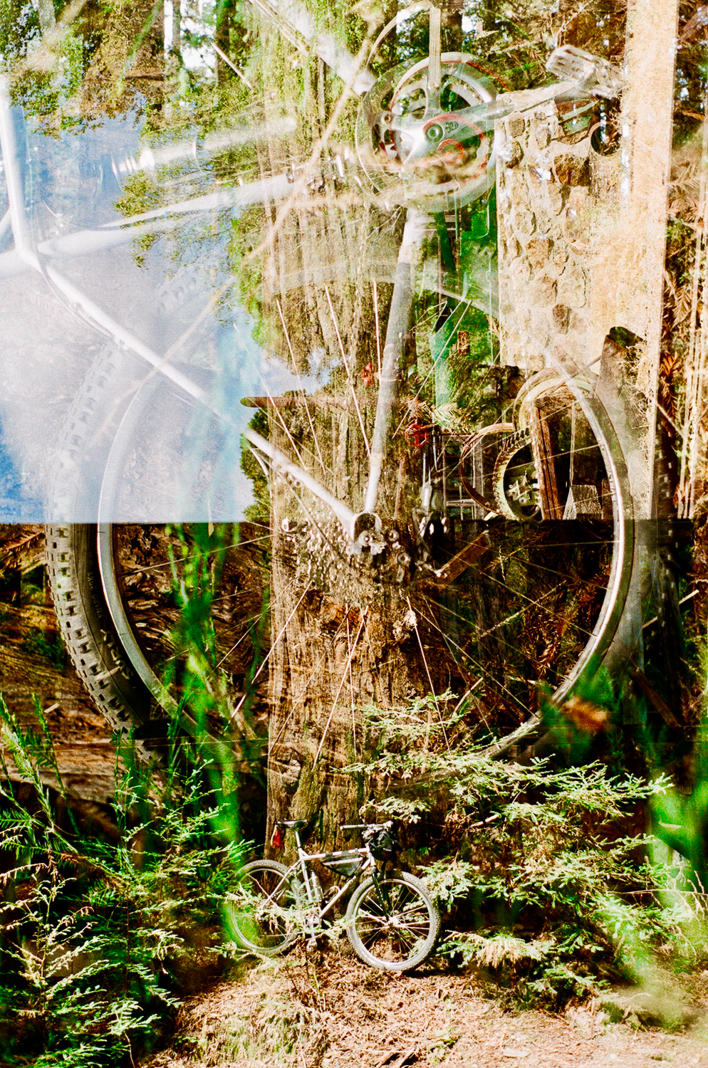 I am super stoked to get to share some photos with you thanks to NLLTL! My name is Nicky. I live and grew up in the Santa Cruz mountains where the towering redwoods meet the windswept western coastal bluffs of California. I am blessed to be able to ride a bicycle to work through a small, beautiful, and ecologically diverse State Park. The photos I’m sharing were all taken on my rides to and from work. My commute has become a very important part of my life. If you are into riding bikes, you don’t need to hear me pontificate on the positive effects it can have on your psyche, you already get it. Anyway, I bring my camera along: a well-loved Pentax K1000 my father-in-law gave me that almost ended up at a thrift store. Photography incorporates a creative outlet into my daily routine, a short meditation, and a window through which to play with the cosmos. I built up all the bikes that I ride so of course I like to photograph them, and bikes make such wonderful subjects against beautiful backdrops (duh). I’m into double exposures, light leaks, and technically incorrect vibes. I like the accidents and surprises that happen when you are still figuring things out. I’m a total kook (both in photography and bikes) I try not to take myself too seriously, fun is paramount. Shout out to my friend Chris (aka IG sensation Dirtdrops) for all the encouragement, inspiration and tagging #nolifelikethislife on my posts! Hope you enjoy the pics!