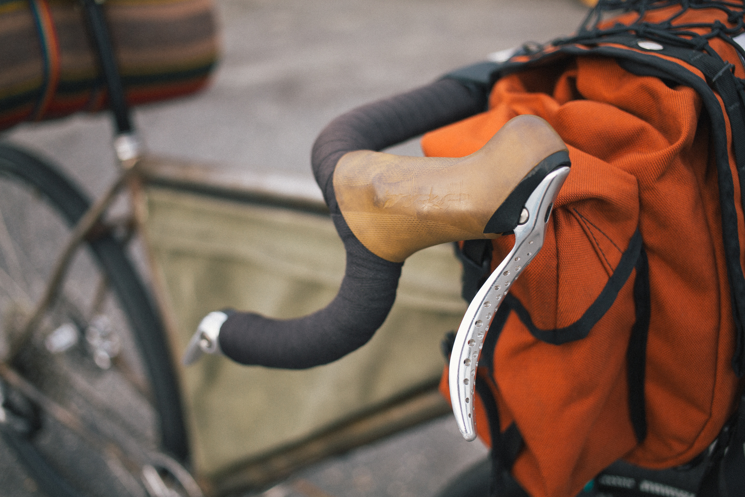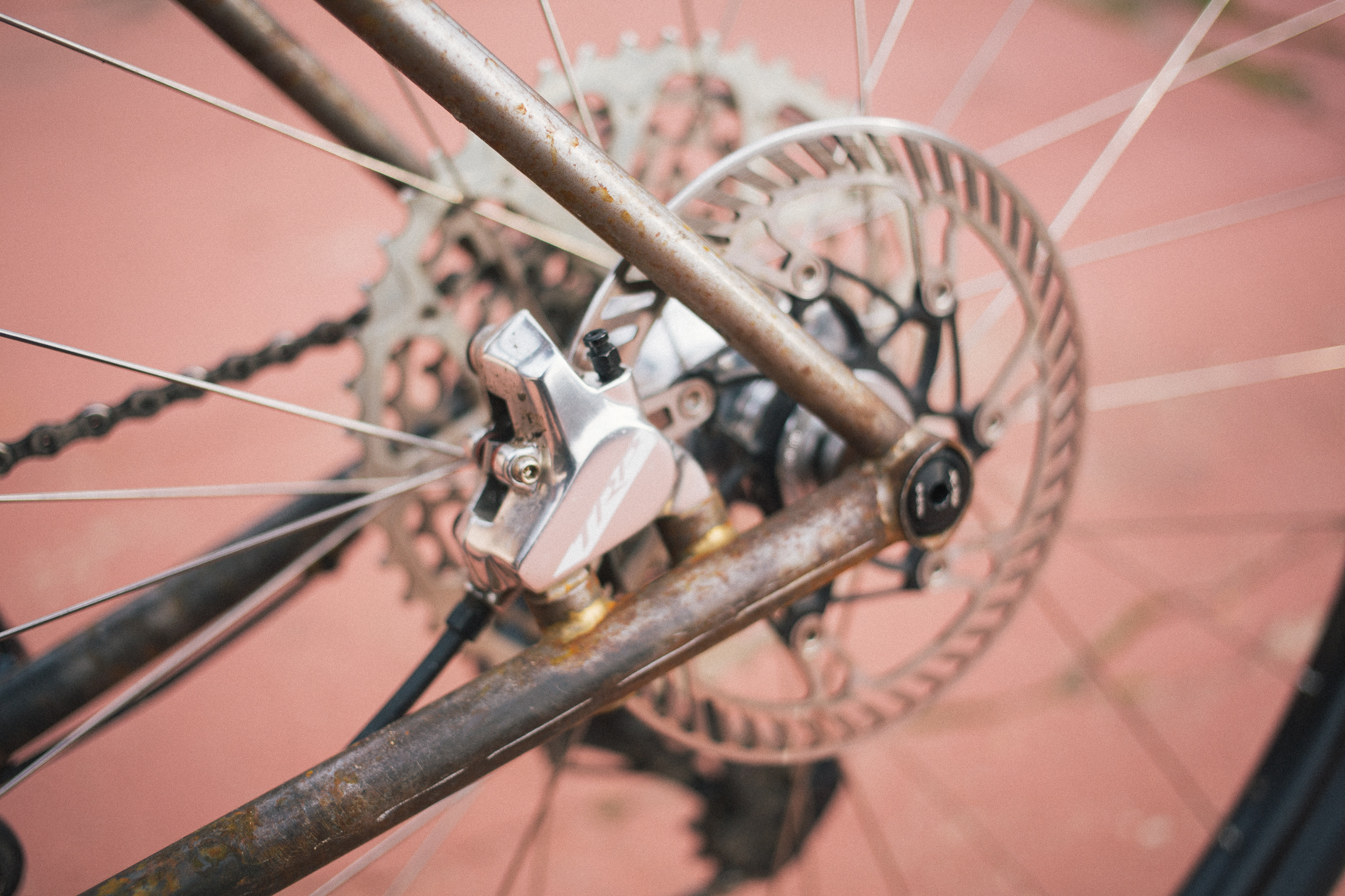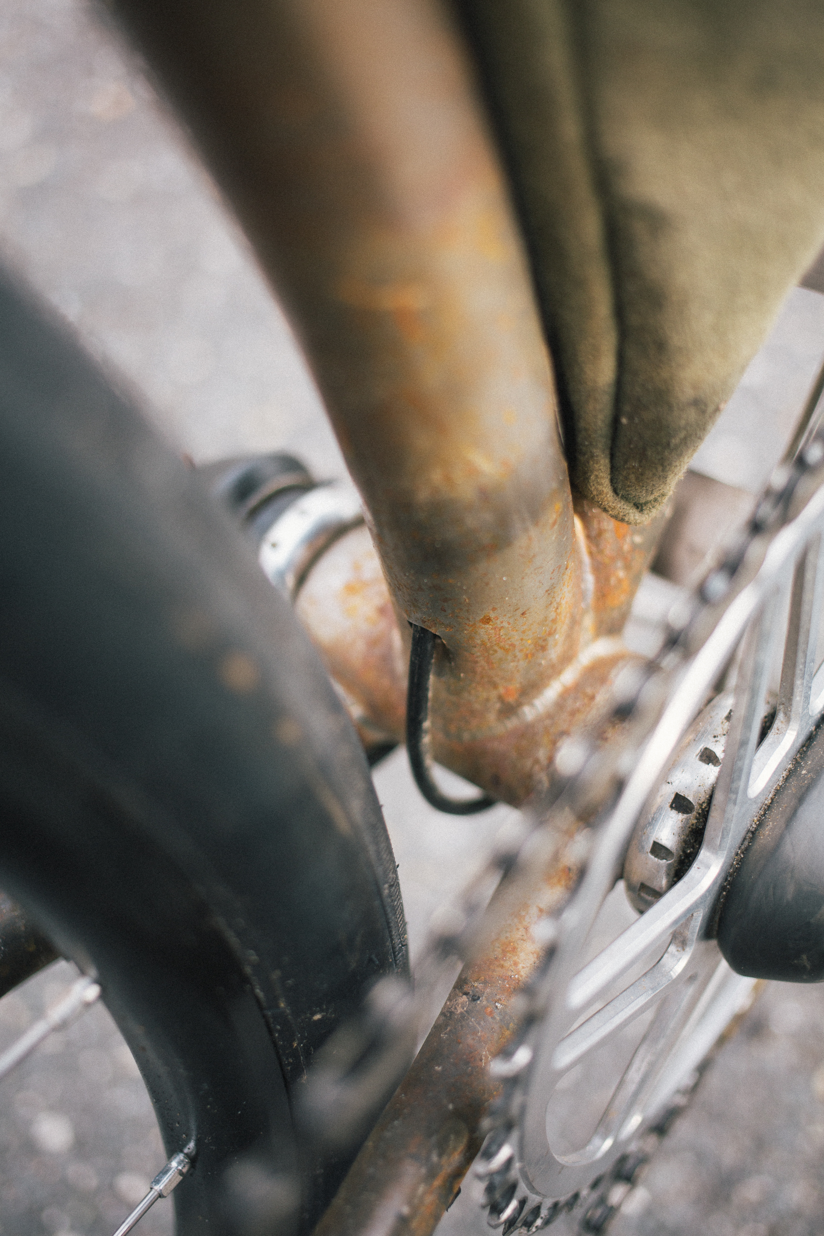 This is one of Kyle’s personal bikes, based on a frame he had made by Darren Larkin. I know Kyle had been thinking long and hard about what he wanted out of a personal bike, and this bike is pretty damn perfect, and has so many features that you probably wouldn’t even notice, it’s a true sleeper. A crusty tourer with the capability of ripping some trails and hitting a rhythm section. A true 700c ripper, or a 650b hardtail mountain bike! So many small details that could easily get skimmed over.