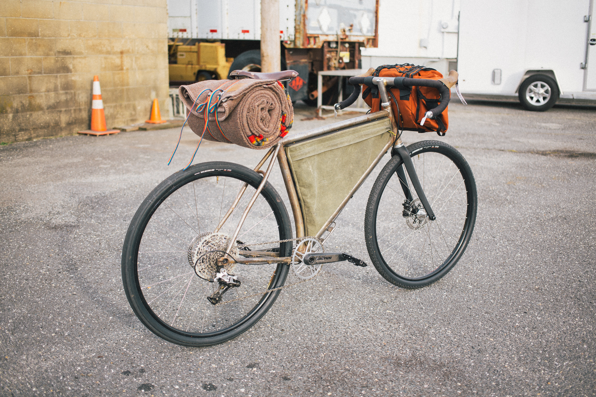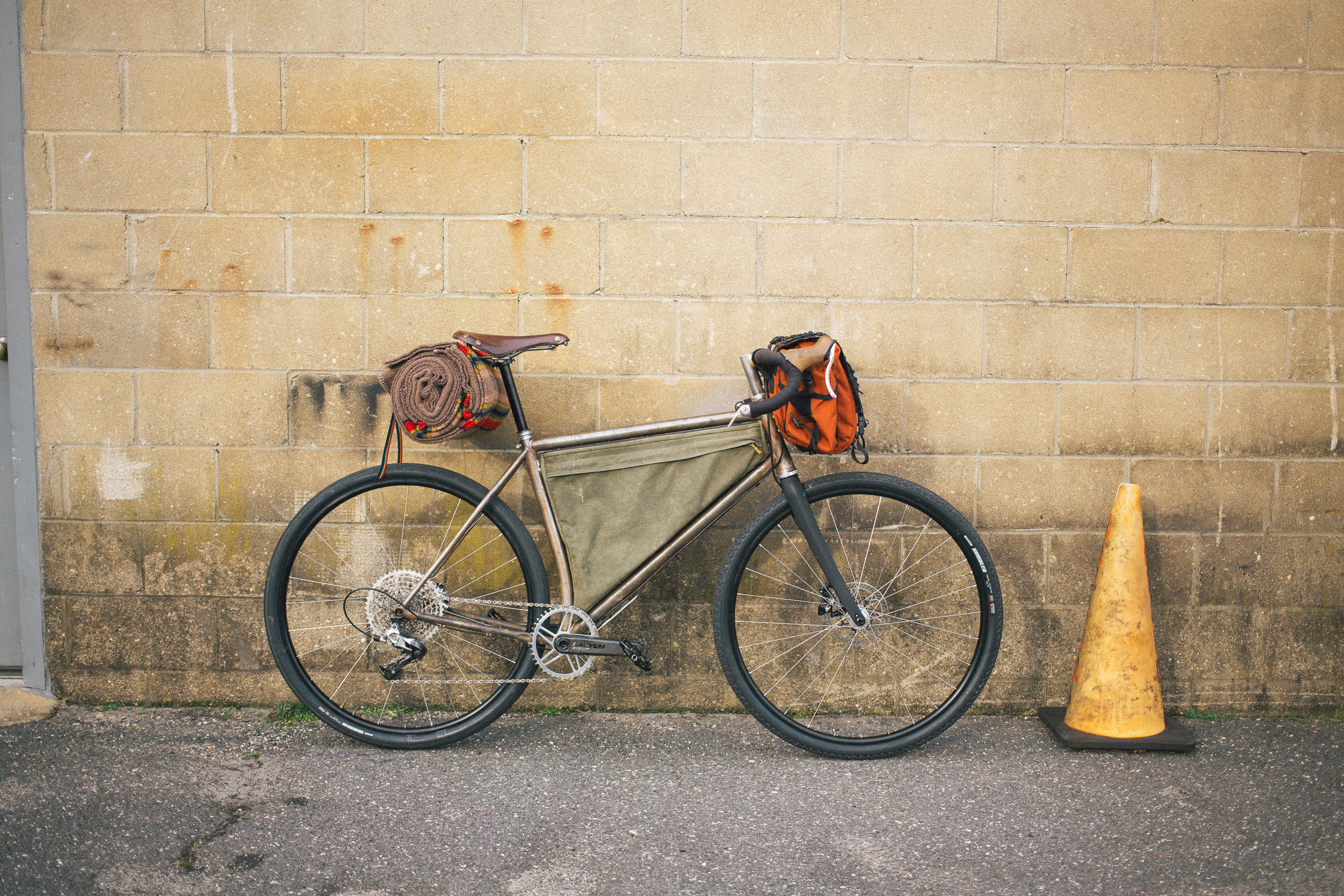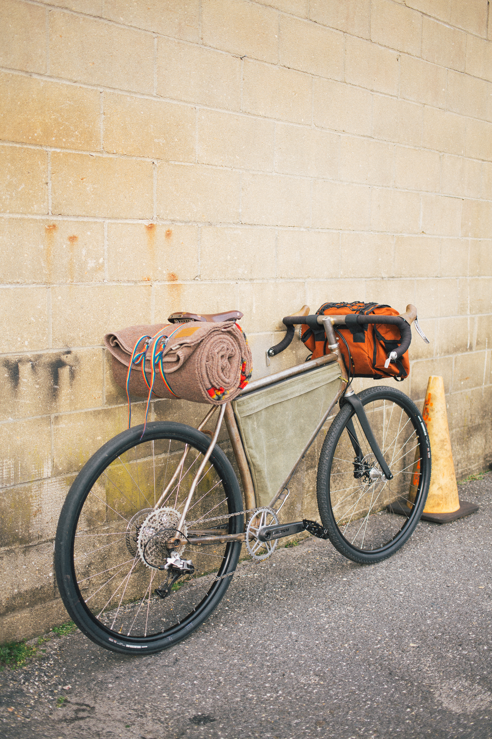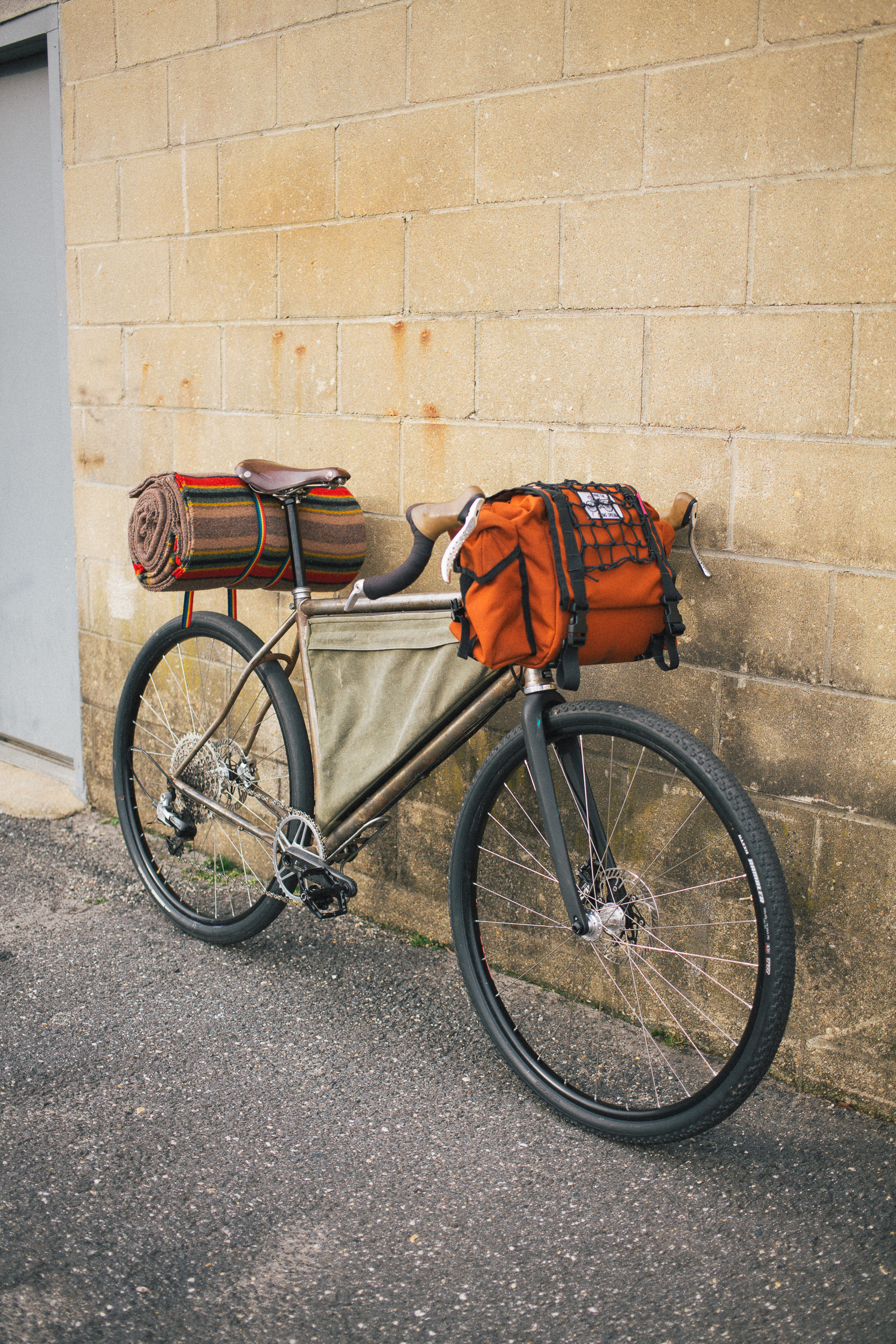 This is one of Kyle’s personal bikes, based on a frame he had made by Darren Larkin. I know Kyle had been thinking long and hard about what he wanted out of a personal bike, and this bike is pretty damn perfect, and has so many features that you probably wouldn’t even notice, it’s a true sleeper. A crusty tourer with the capability of ripping some trails and hitting a rhythm section. A true 700c ripper, or a 650b hardtail mountain bike! So many small details that could easily get skimmed over.