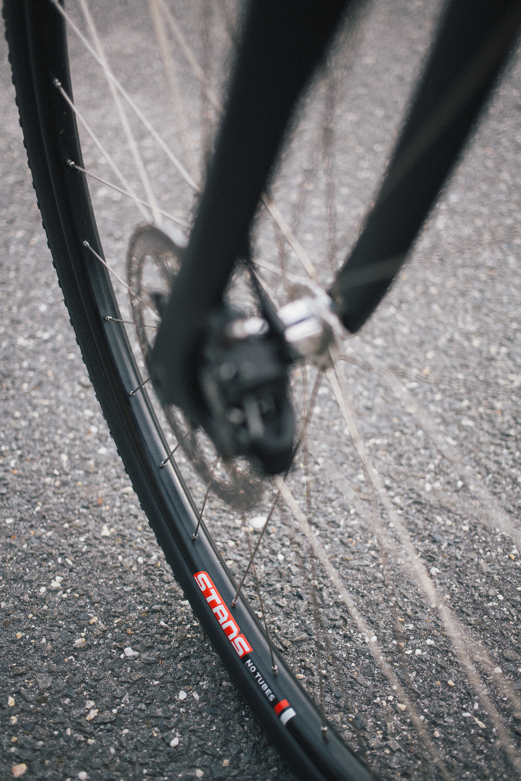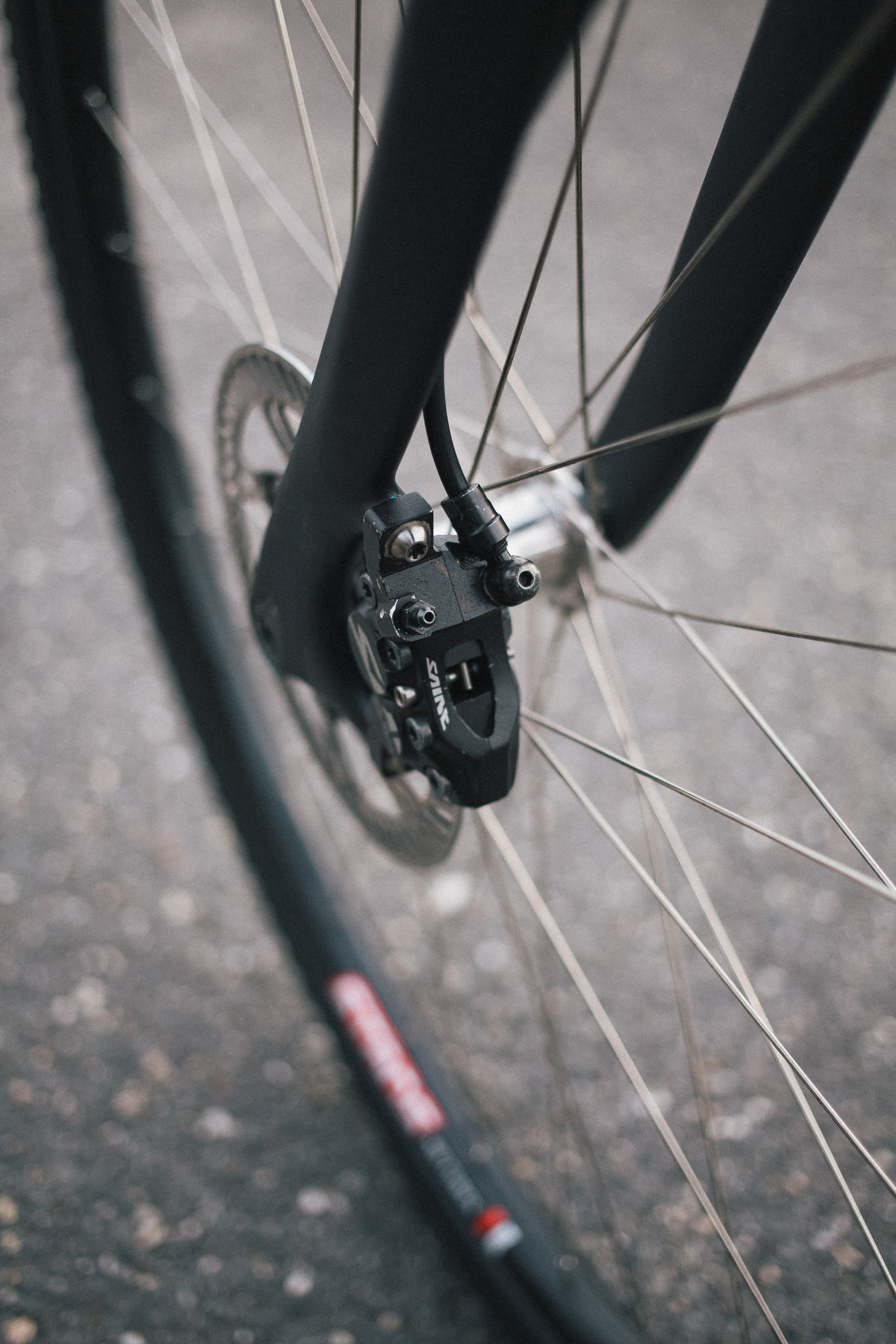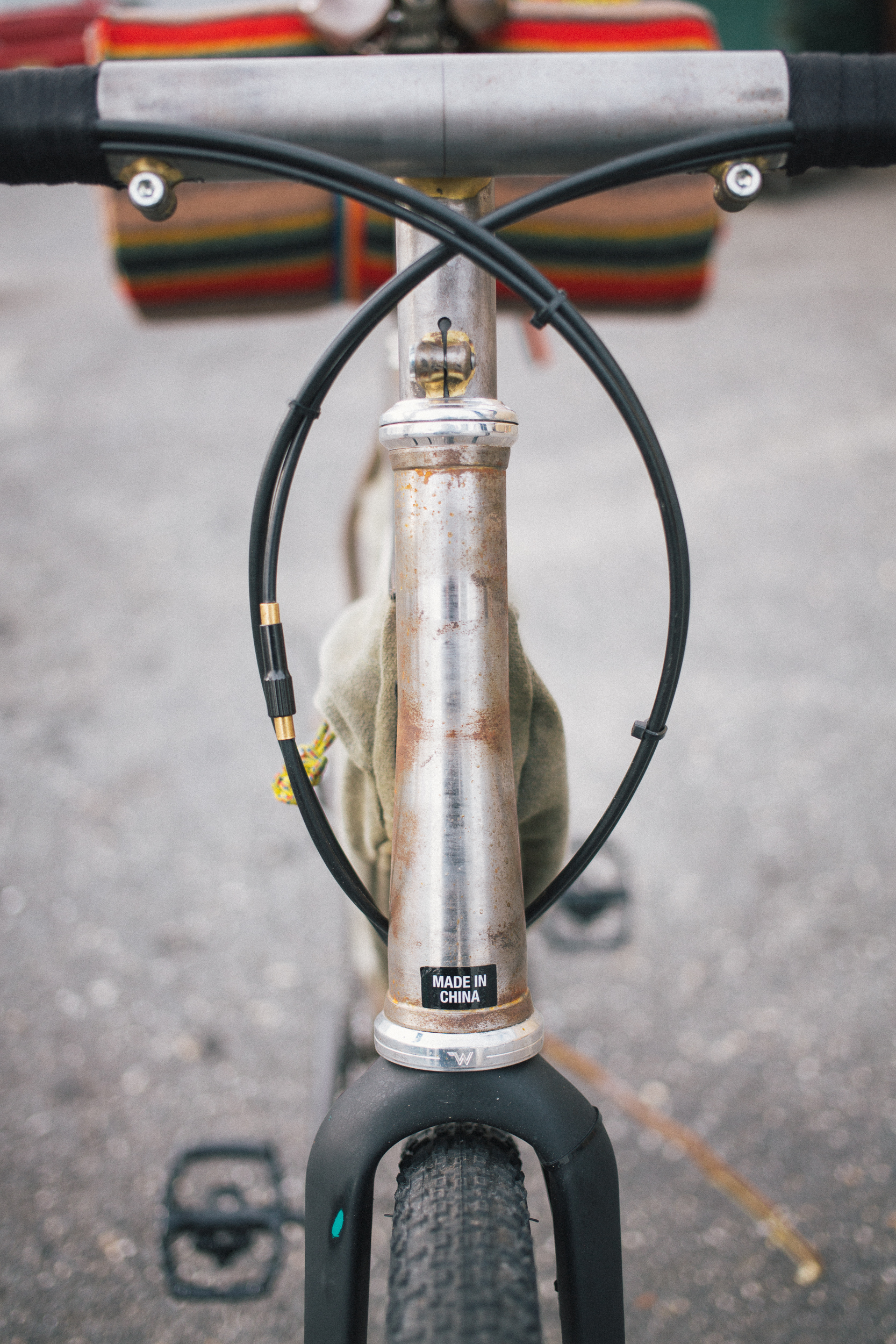 There’s so much cool stuff about this bike, that I tried to shoot to show off, like specifically, the downhill front brake, or the Stan’s rims that are arguably the lightest aluminum 700/29″ rim made. Or the cracked hood from getting brappy, fixed with a chain link??? Also, it wasn’t made in China, but when you have a shop full of friends, someone’s gonna mess with you in a harmless and clever way.