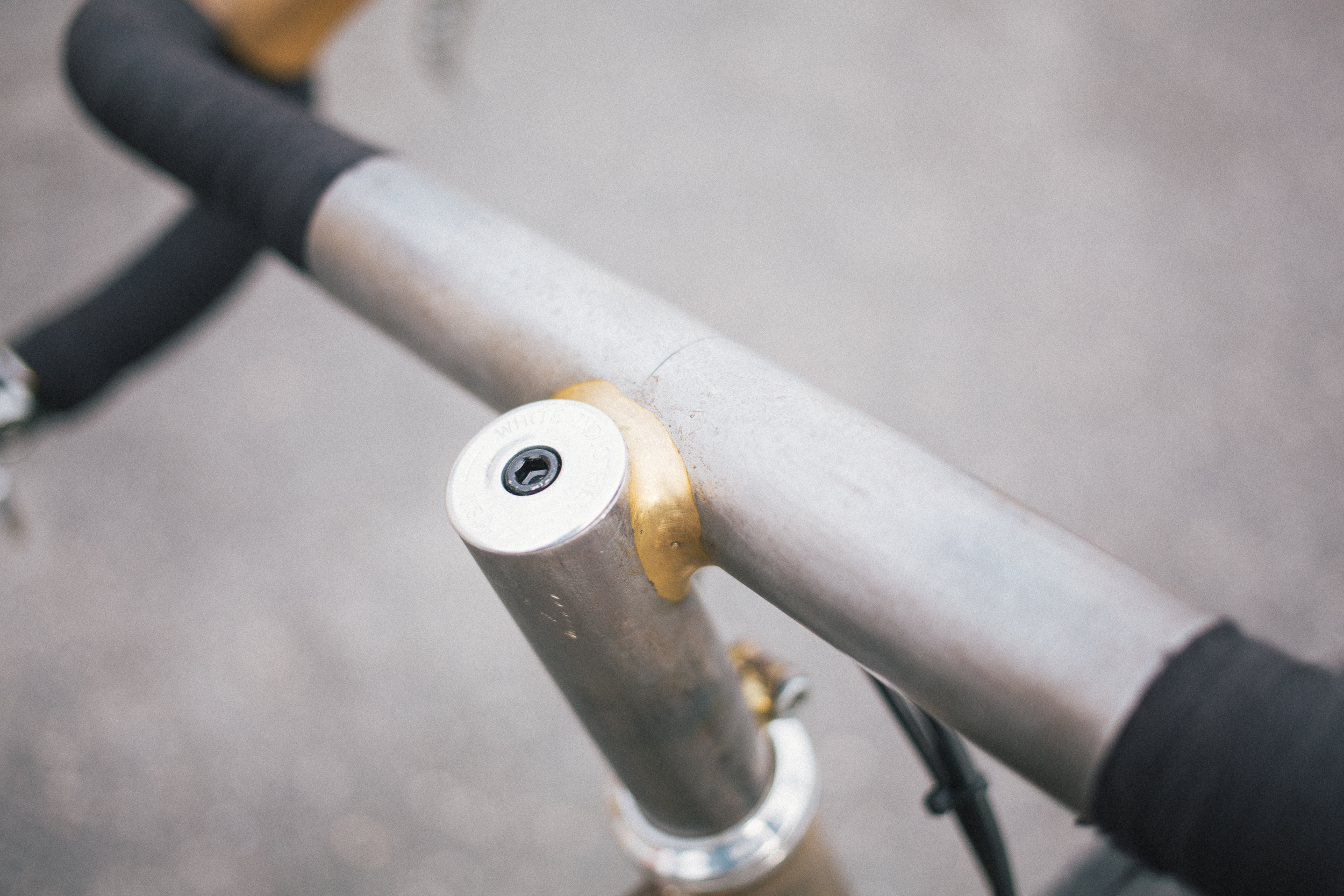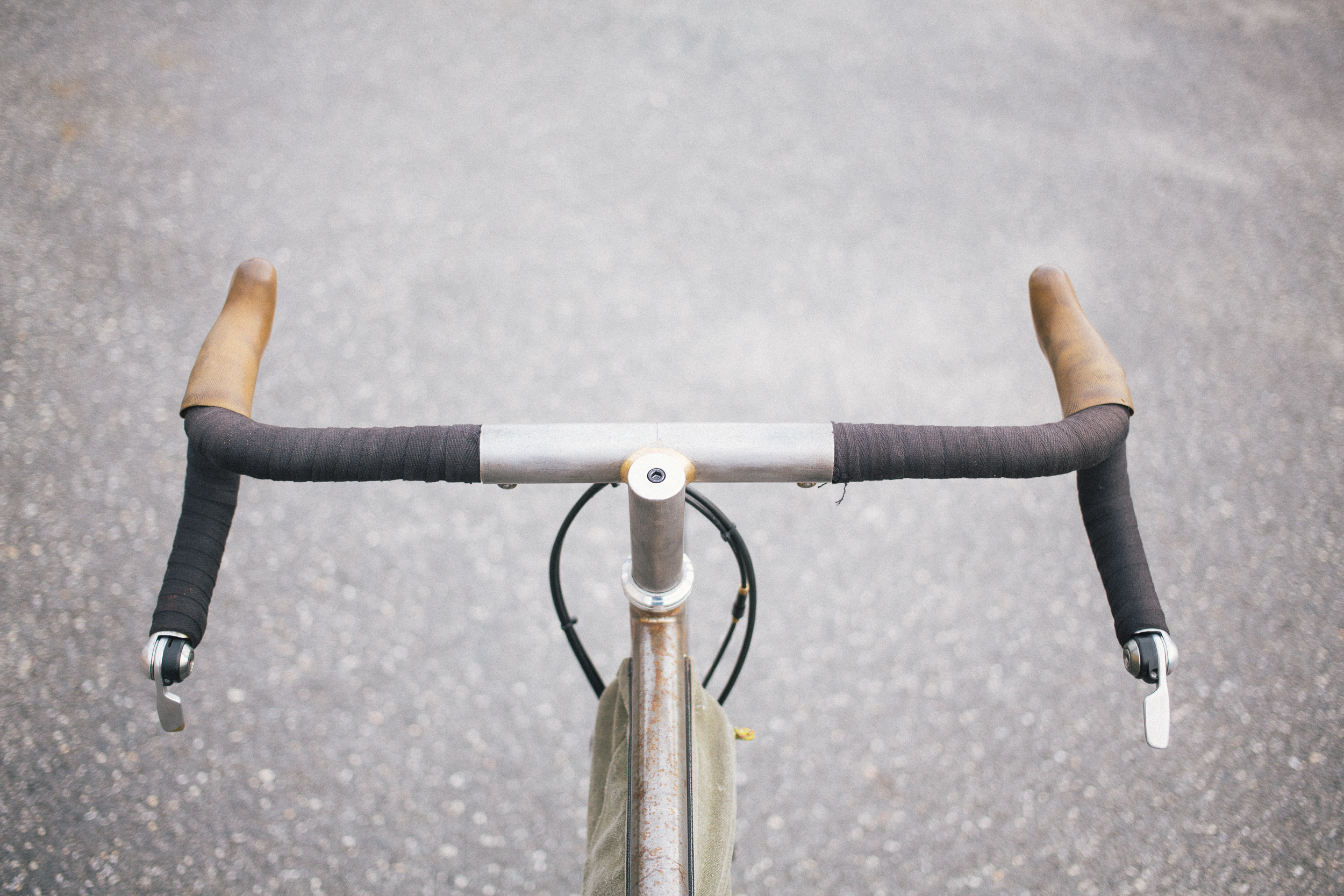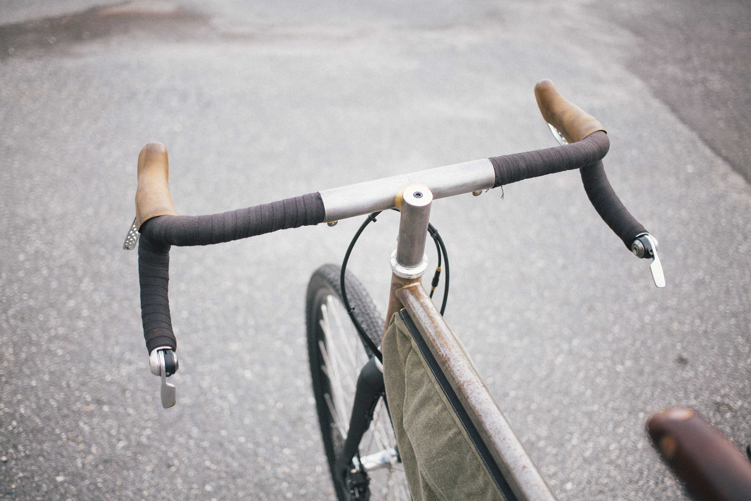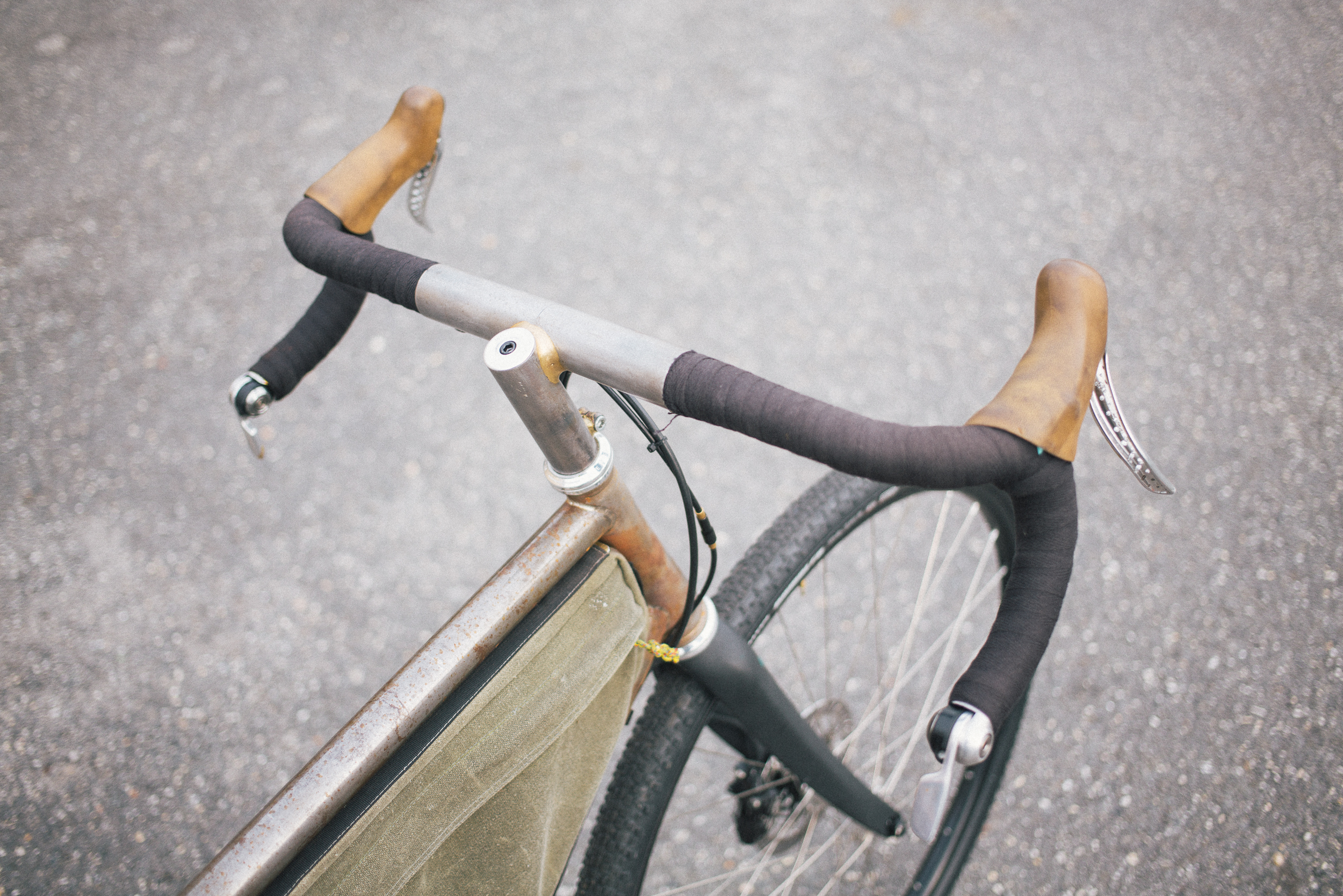 I’m sure before reading this, you’ve already scrolled through the photos of this build, and possibly noticed the dropper post. It’s subtle, but it’s there. That left bar-end shifter drops the post, quickly and easily. Kyle even machined down the top collar to match the outer diameter of the seat tube. It ends up just looking like a silver seat collar.