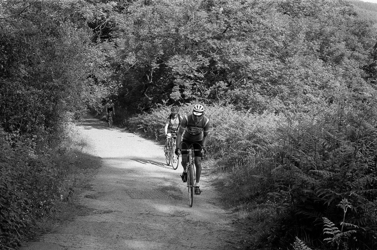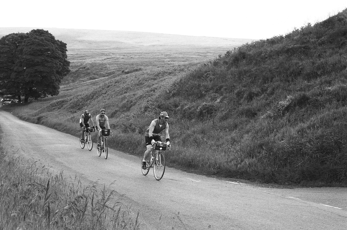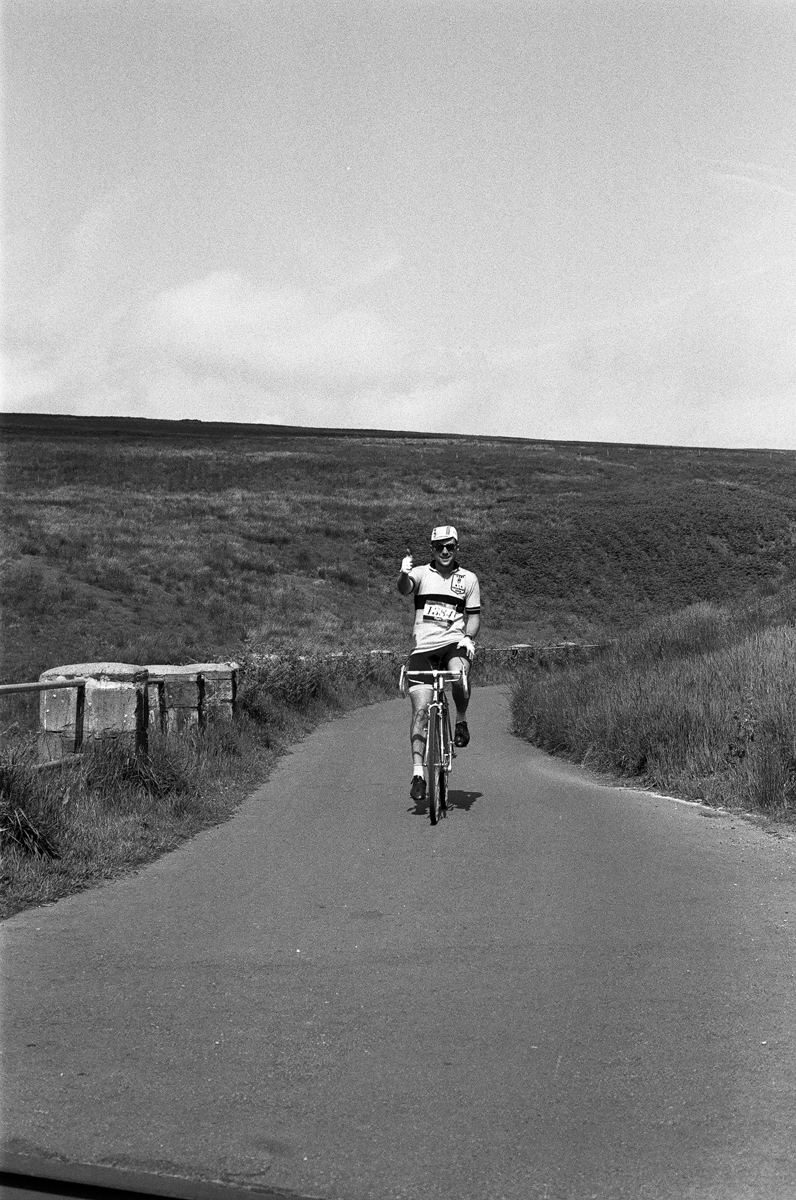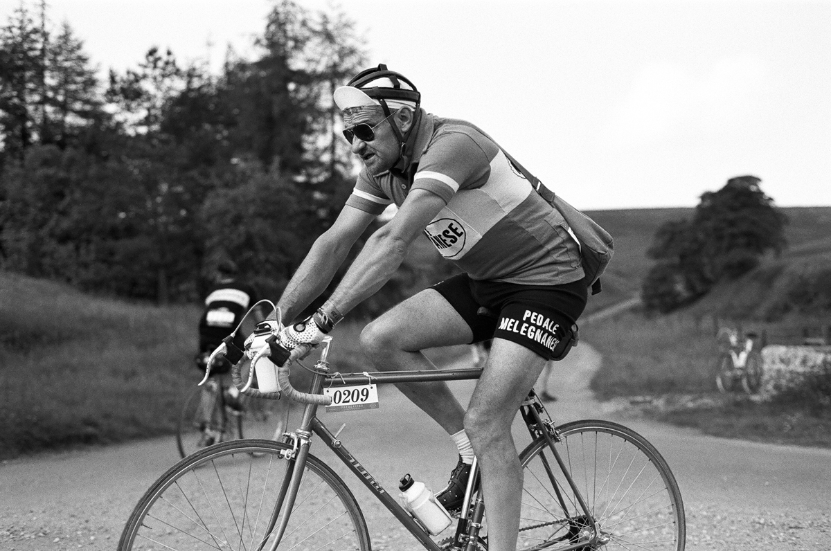 As a European contributing to an American website, I’m always concious that what I upload may lose or gain appeal as it crosses the Atlantic. Track bike crits around London and road racing are generally fairly safe territory, but grown ups in fancy dress on old bikes is a bit of a grey area. No doubt though, it was a great event. Only pre 1987 bikes and kit were allowed on a hilly 100 mile route through the Peak District in the north of England. I went and joined them for a bit (on a not very old carbon Cinelli) and shot some black and white film. At a rest stop I had a chat with competitors from all over the world. Some were riding as teams speaking several different languages, who’d met at the festival site in Bakewell. Others had come from Japan, The USA, New Zealand and all over Europe. Over coffee from a Rapha H-Van they all told me how tough it was and how much fun it was. I have a wobbly old 70’s Vitus, and next year, I’m totally getting a woollen jersey and some short shorts so I can get involved.