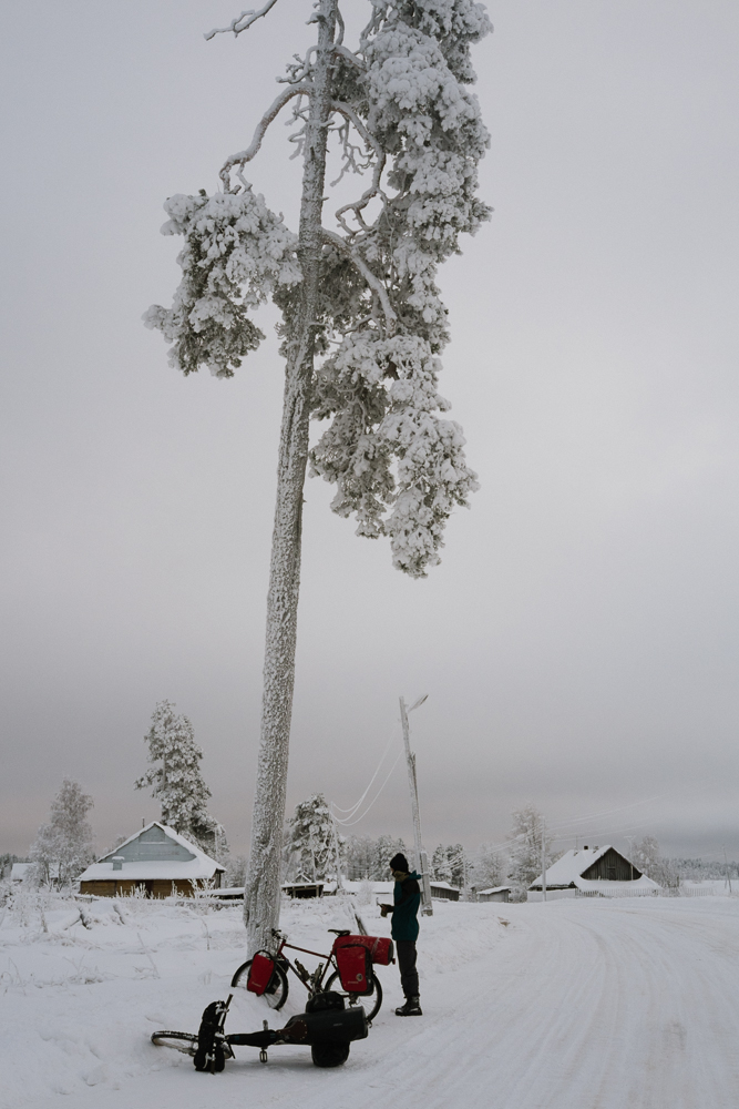 All the time we were laughing about how we would die. Like: don’t forget to take a picture of me being eaten by a bear, so you can post it later on Instagram! But then we heard about the wolves that killed a dog the other day, it wasn’t that funny anymore’. New Year 2015 Andrey and Alexander wanted to celebrate at Yustozero, where is was supposed to be safer. One of the locals mislead the guys and when they realised that the closest village was in 30 kilometres (and they went 40 km a day in average), it was already getting dark. So they just went straight ahead by the road in complete darkness for several hours. Eventually they arrived at Sovdozero. Out of 20 houses only one was lit up from inside. But the guys decided not to knock, as the people were supposed to be celebrating New Year already. The guys found a place to put their tents nearby and had their small party: shared a cup of tea, 5 candies and leftovers from morning rice and tinned stew.