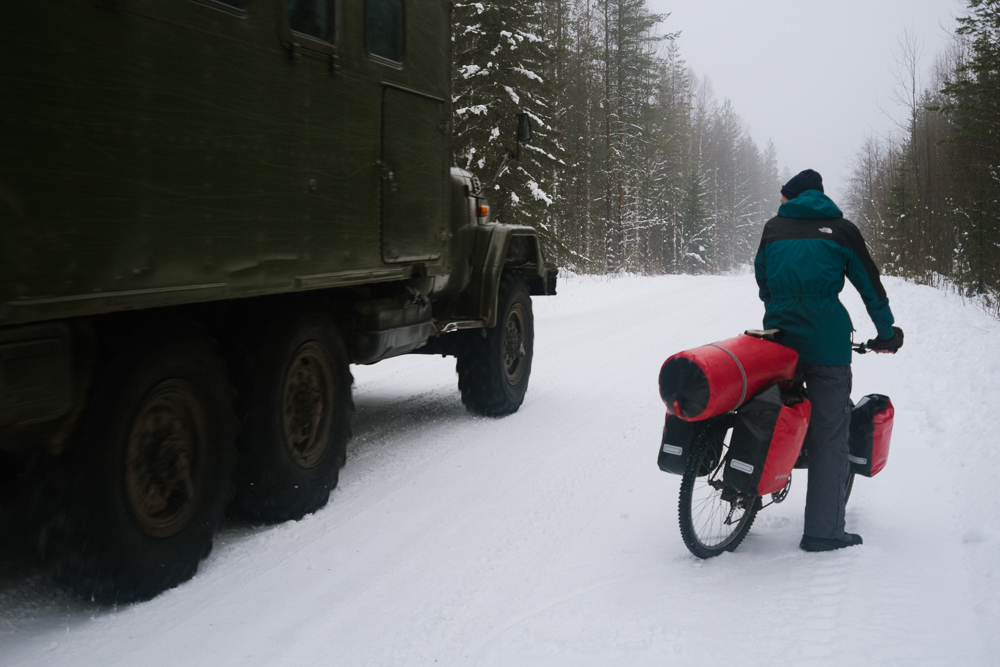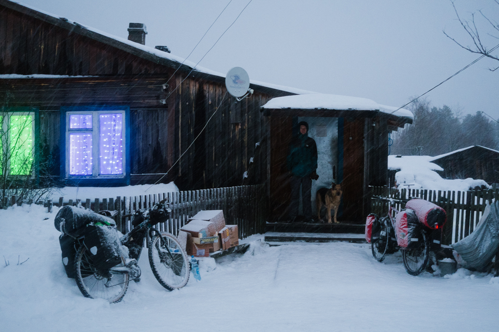 Boris, a man of about 40 years, was willing to give the guys a whole house that had a real stove in it. Boris took them to the nearest supermarket, where they got food and — finally — some beer. They guys didn’t take any alcohol with them — it’s strongly prohibited to drink when it’s that cold. Boris went somewhere and then returned with traditional New Year’s dishes, a jar of raspberry jam and a lemon. The guys dried their stuff, spent a night and moved on to the next point — Gimoly. There they met a group of drunk women, who started swearing at them. But the guys were lucky to find a place to sleep and the next day one of the locals took them to Petrozavodsk for a good amount of money. From there Andrey and Alexander were supposed to catch a train to go back home. It was January 3, they had spent 6 days on the road.
