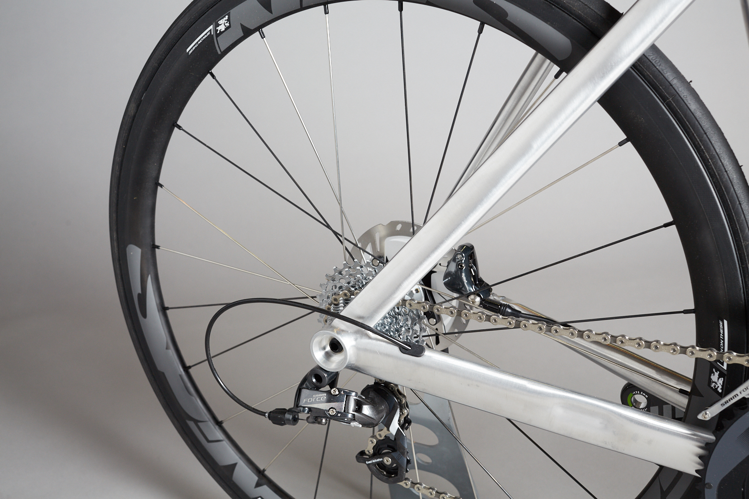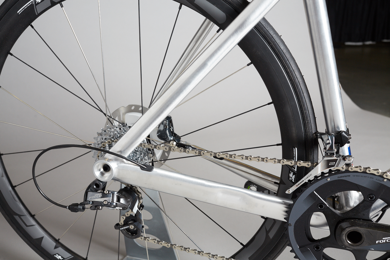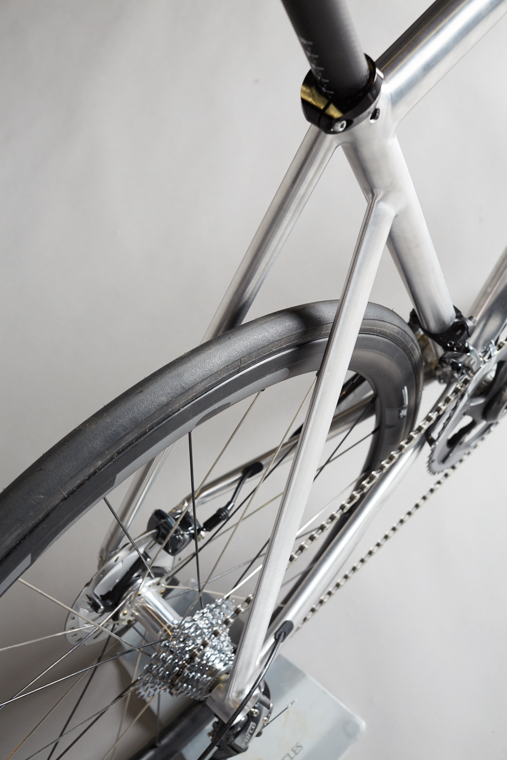 Clearly the first thing to notice on Weis’ bikes are the asymmetrical stays, and the FAT drive-side chain stays. Damn.