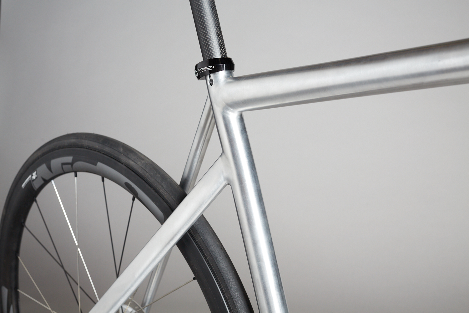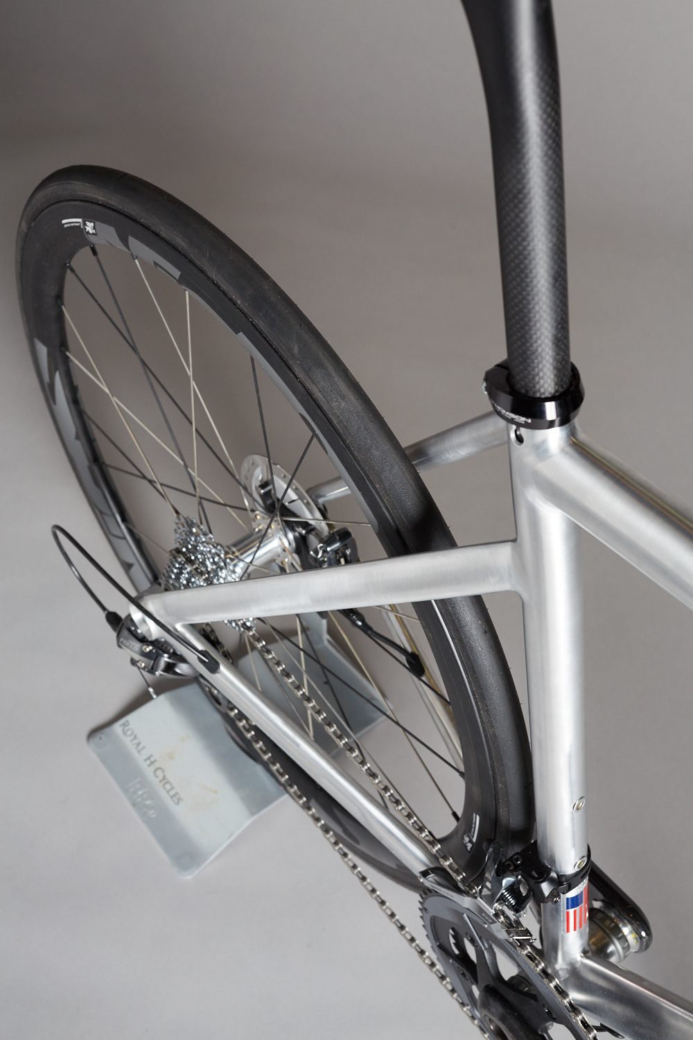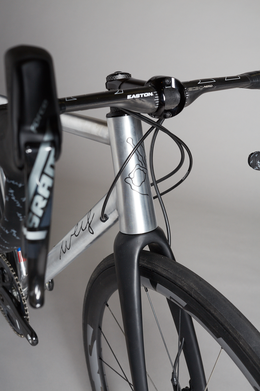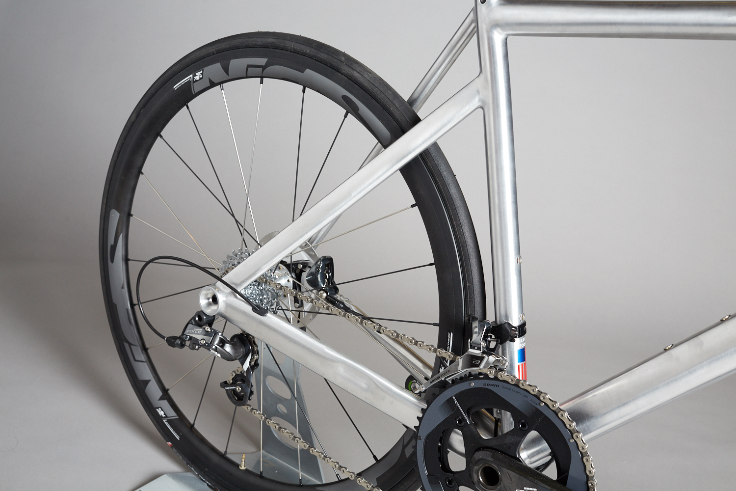 Clearly the first thing to notice on Weis’ bikes are the asymmetrical stays, and the FAT drive-side chain stays. Damn.