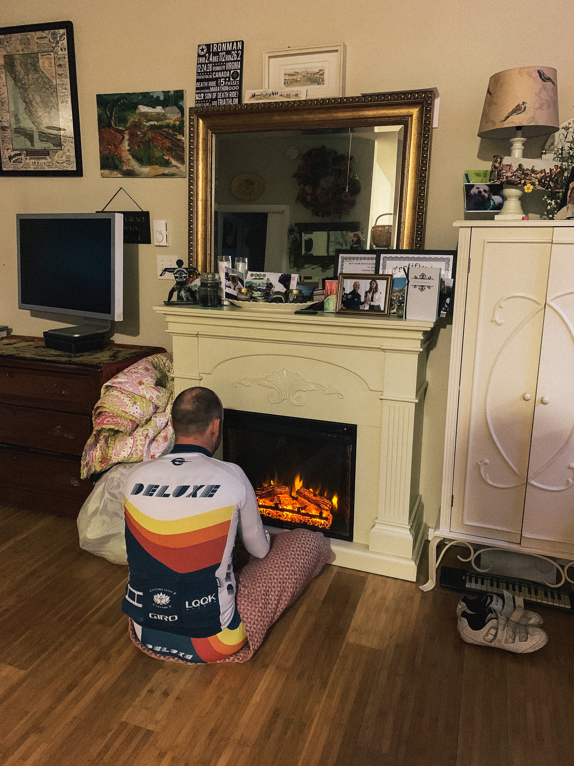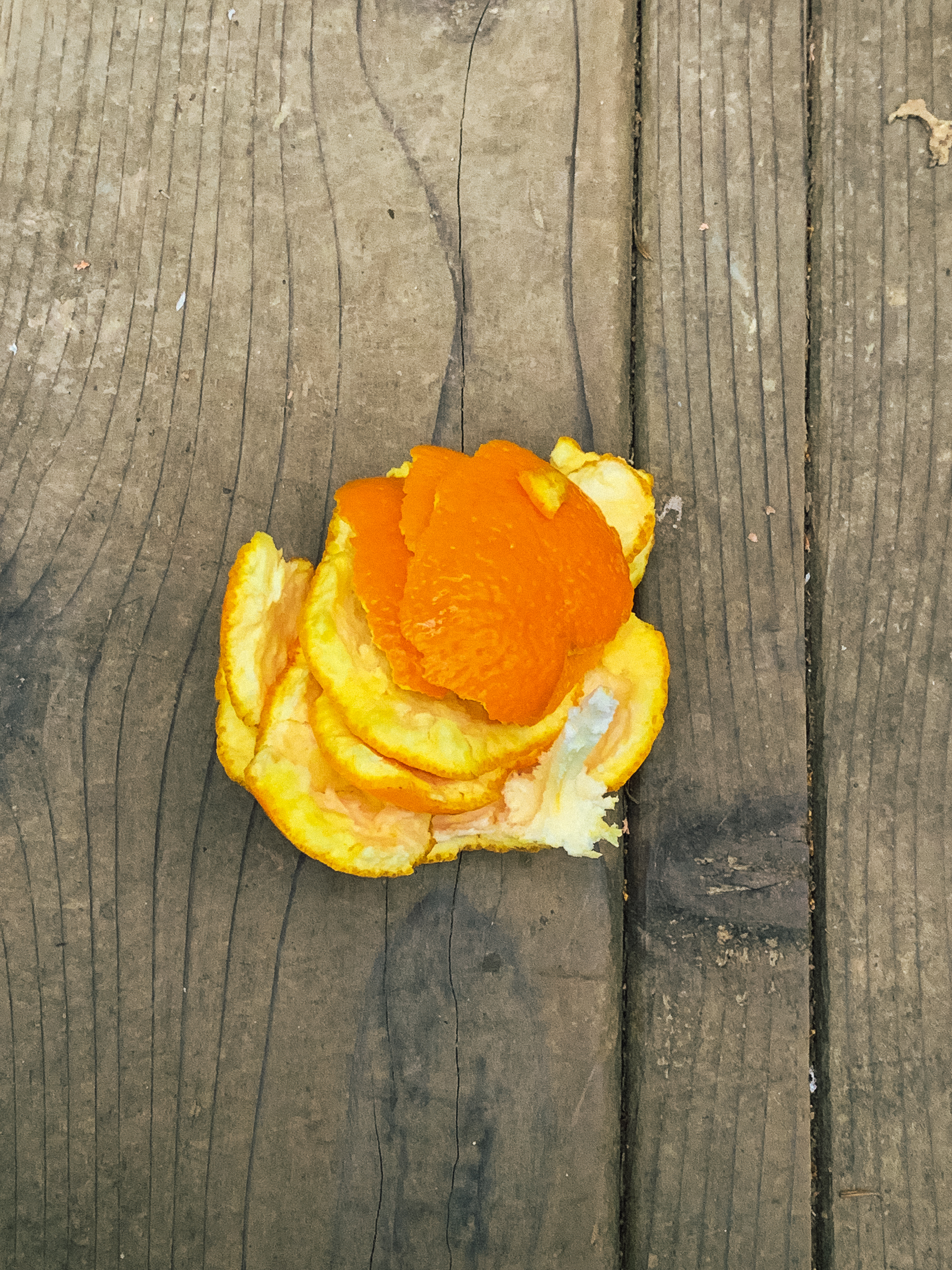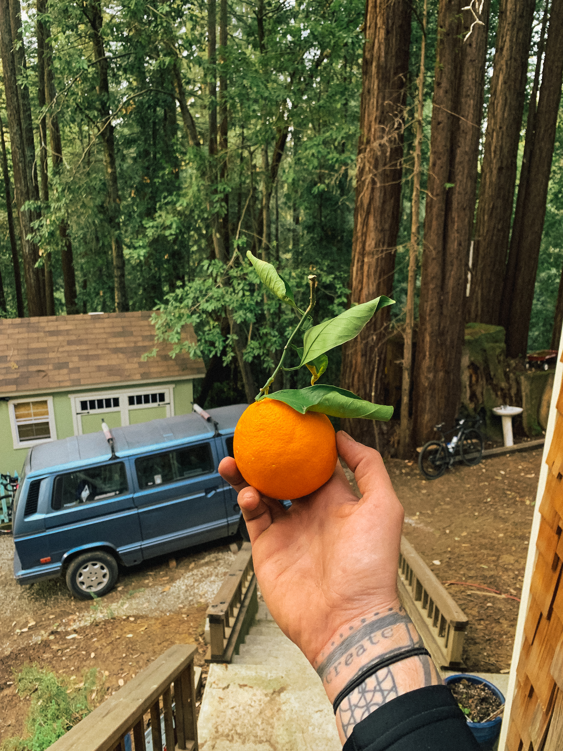 We climbed the last 10 miles up the narrow and shoulder-less Route 9, and actually got some traffic on our way up. The cabin is nestled on the top of a small peak in Felton, and the last mile or so is way steeper than I expected. Landing us right in the pocket of a very chilly little micro-climate where the cabin lived. We got inside, and turned on the electric fireplace and huddled up as we began to cool down. I wrapped myself up in a quilt, sat down on the porch, ate an orange, and listened to the tall trees.