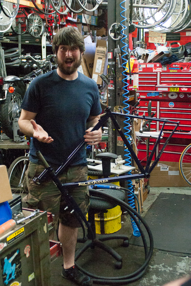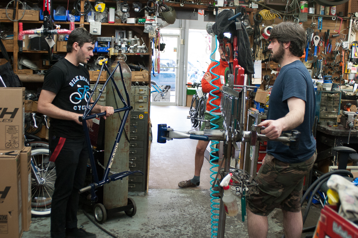 We hopped in the car and head over to Rick Jones’ bike shop, Road Runners Bicycles, which has been run by the same family, in the same location for 50 years. Such a perfect little bike shop for the little town of Glen Cove, NY. Brendon was finally picking up his custom 1×11 designed Jones. This thing is beautiful. If you want to see it fully built up, go head over to the Silk Road Cycles Instagram, and give them a follow while you’re at it! Silk Road is one of the raddest bike shops in Brooklyn, and Brendon is a lucky man, and also now the owner of a rad as hell cross bike with gears on it!