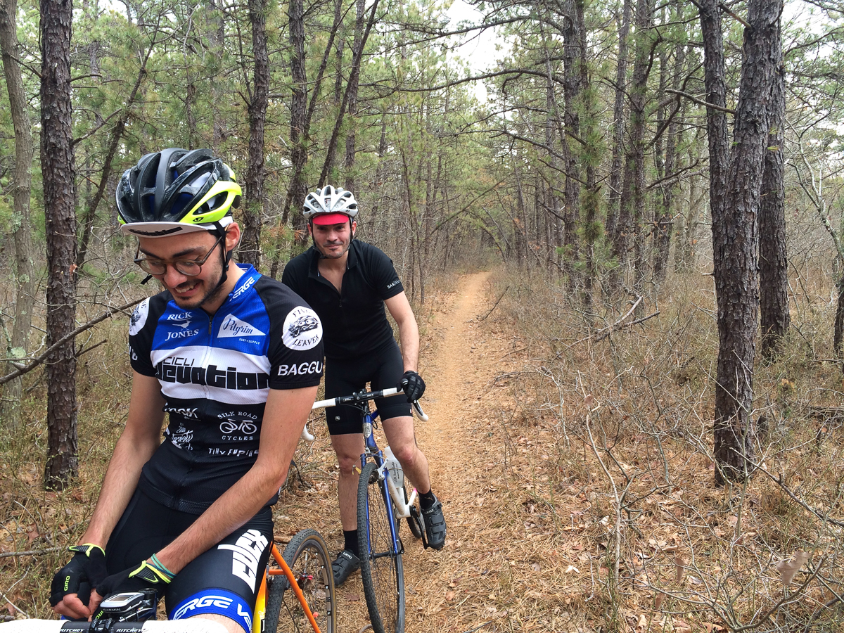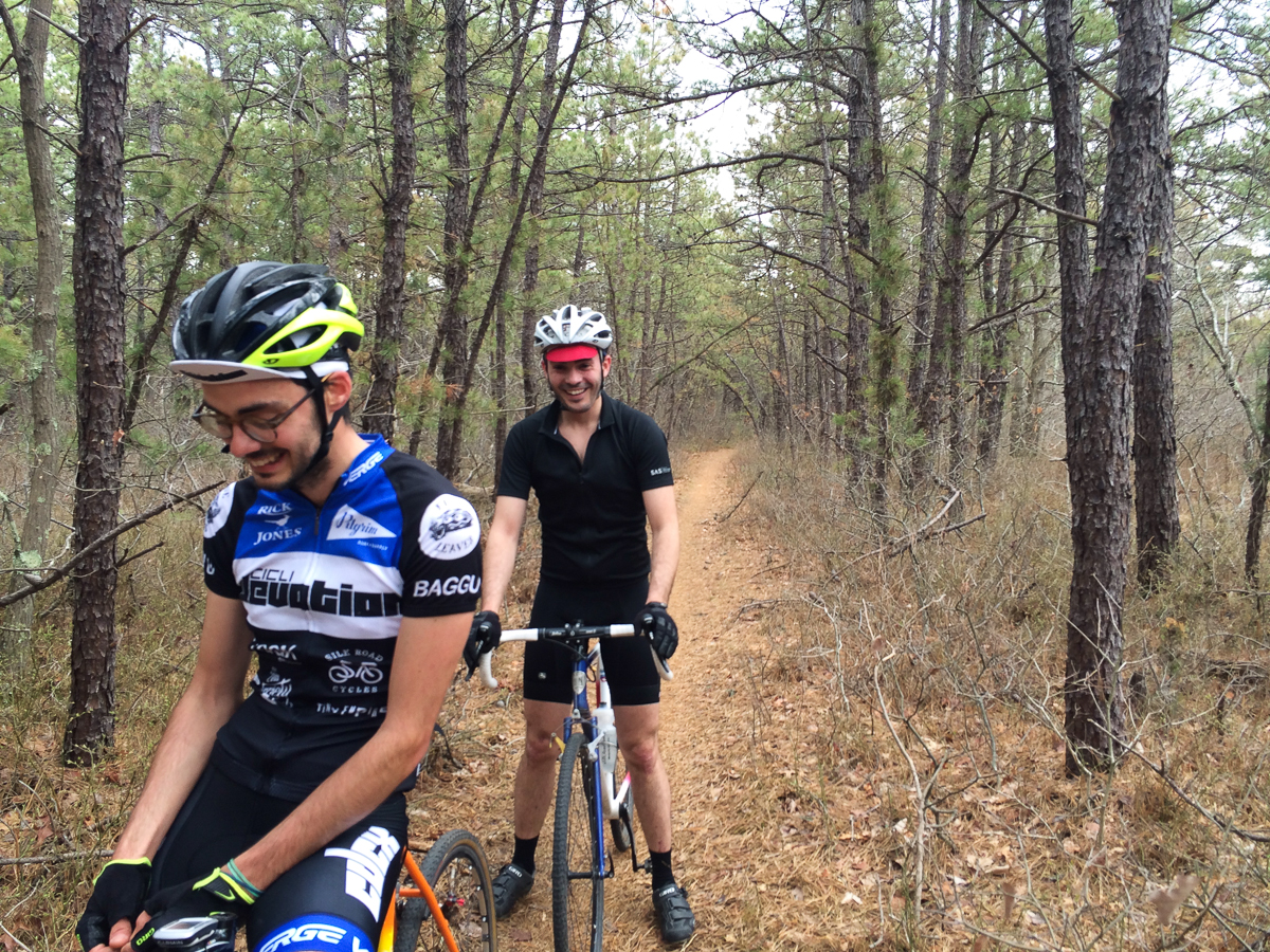 This last Friday I had the pleasure of hanging out with Brendon, the owner of Silk Road Cycles. Brendon, Calvin and I left Brooklyn and went out on a day long mission of awesomeness. We left Silk Road in the morning to go brap at the most amazing trails on Long Island, Rocky Point. Totally jammable on cross bikes. I have the problem of getting there and acting like a dog off it’s leash and just go go go until I either shoulder check a tree too hard or cramp up.