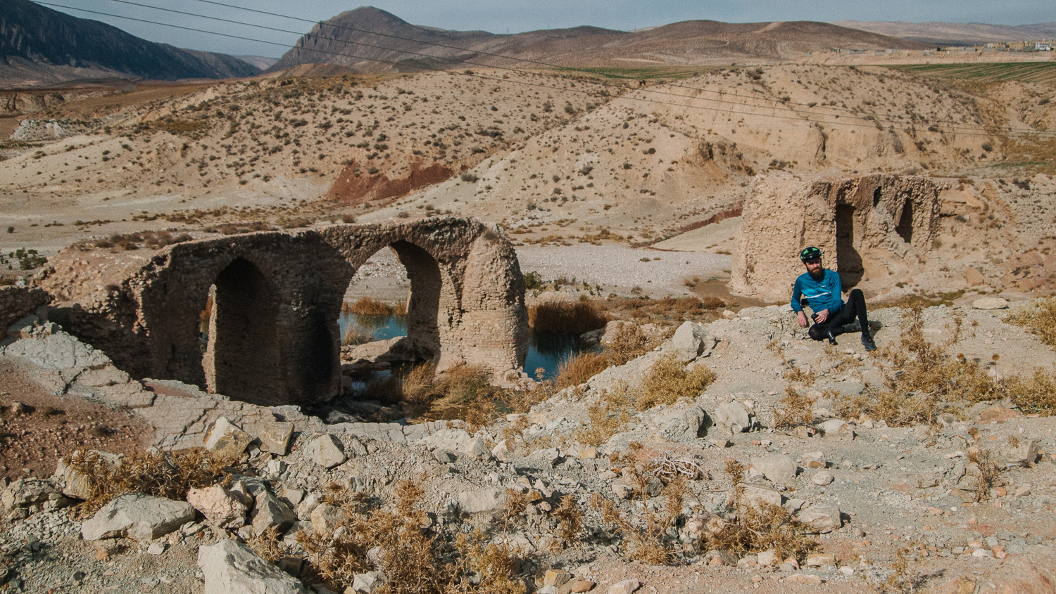 Iranian cities are filled with amazing aromas of different spices, fresh flat bread which is baked on every street, and sweet stuff from numerous patisseries. But unfortunately first of all you pick up a smell of car exhaust emissions. In Shiraz we walked around the city and visited the market. Our second host was a local pick-up artist who wanted to pick up a girl using foreigners. He also promised to take us to an amazing place, but it turned out to be a huge shopping center. Nothing interesting. From Shiraz we finally started our bike tour. It was terrifically hot, hard to find any shady spot and there was no water around. Our skin on face and hands got brown and the air was dry as my favorite wine. But because of piercing wind, we couldn’t take off our jackets during the stops. We rode higher and higher. Beautiful mountain sceneries, steep and long descents with blind turns and smooth asphalt. Sometimes we went by the remains of ancient aqueducts and fortresses built at the beginning of the past millennium.